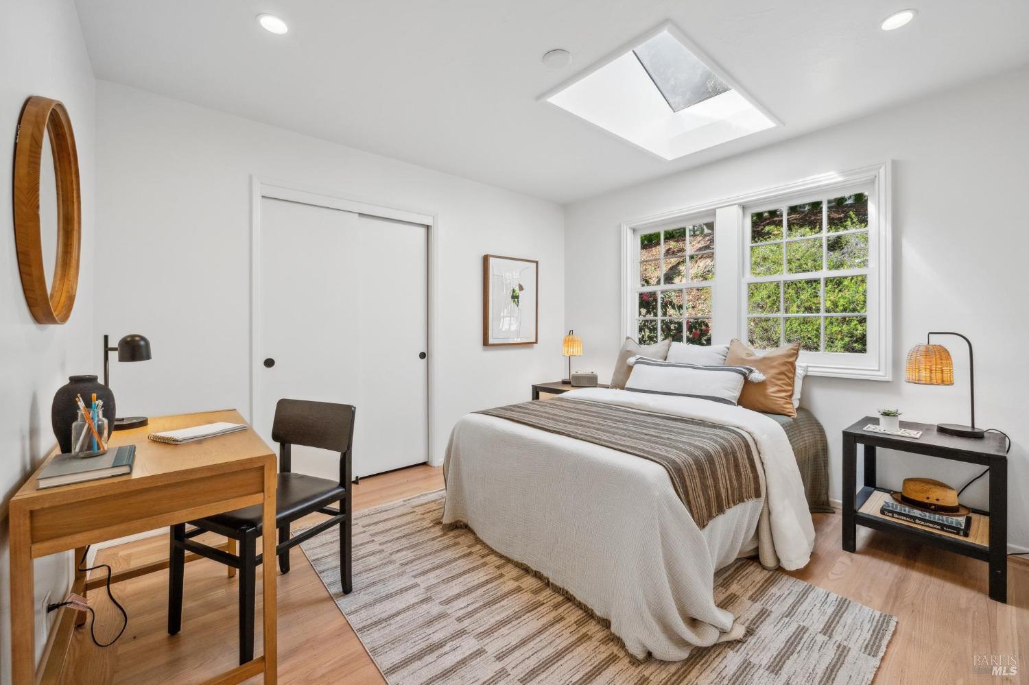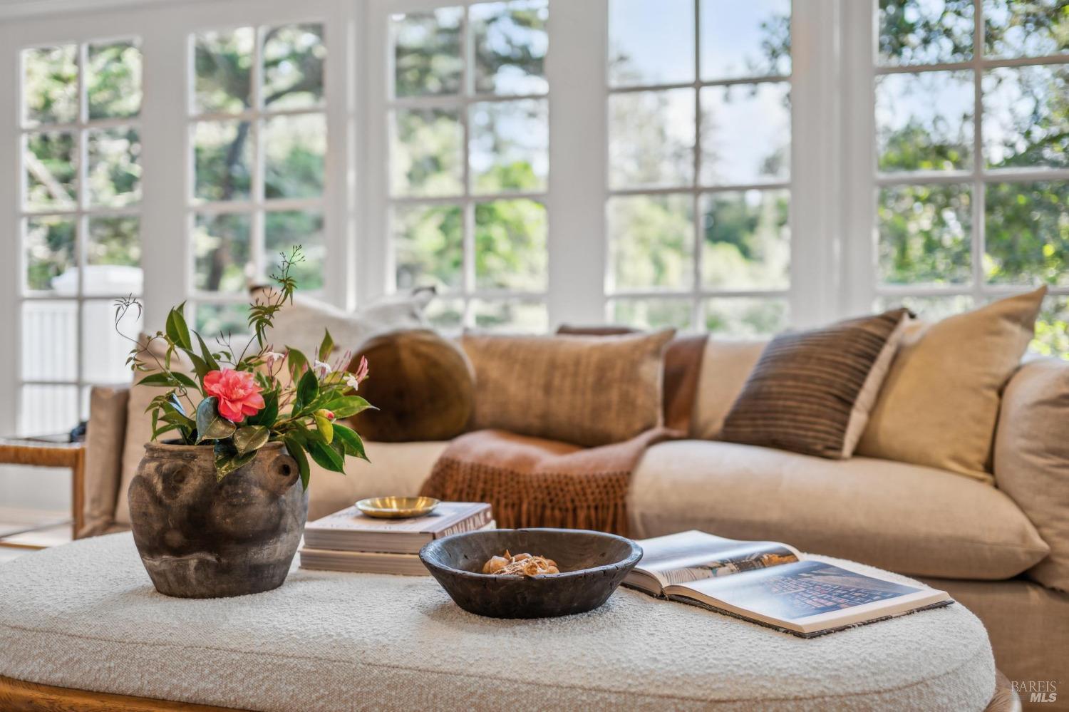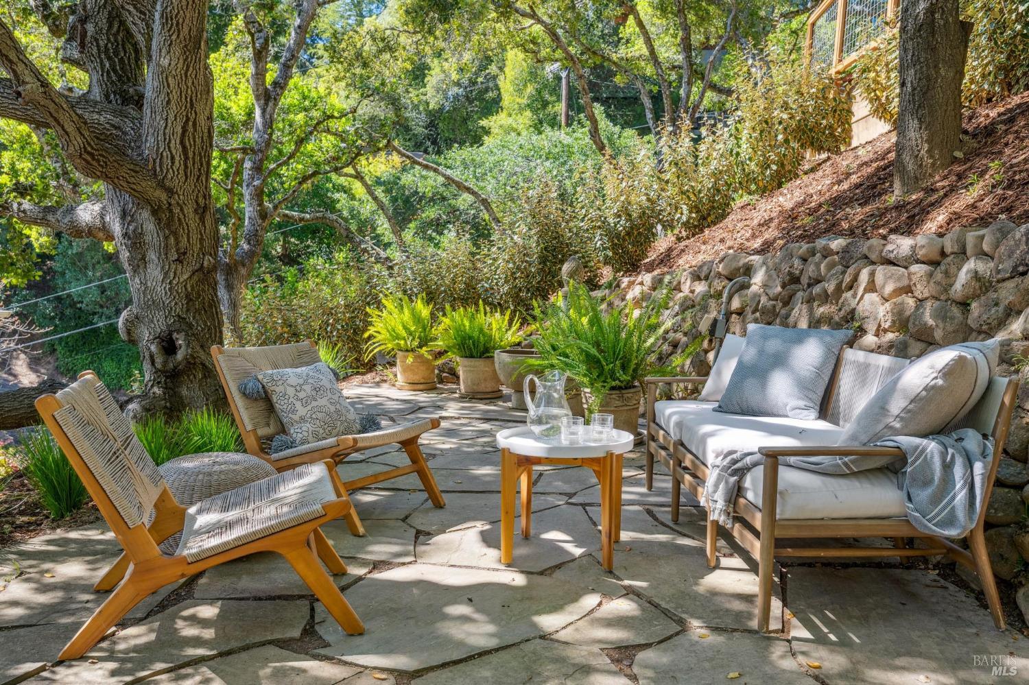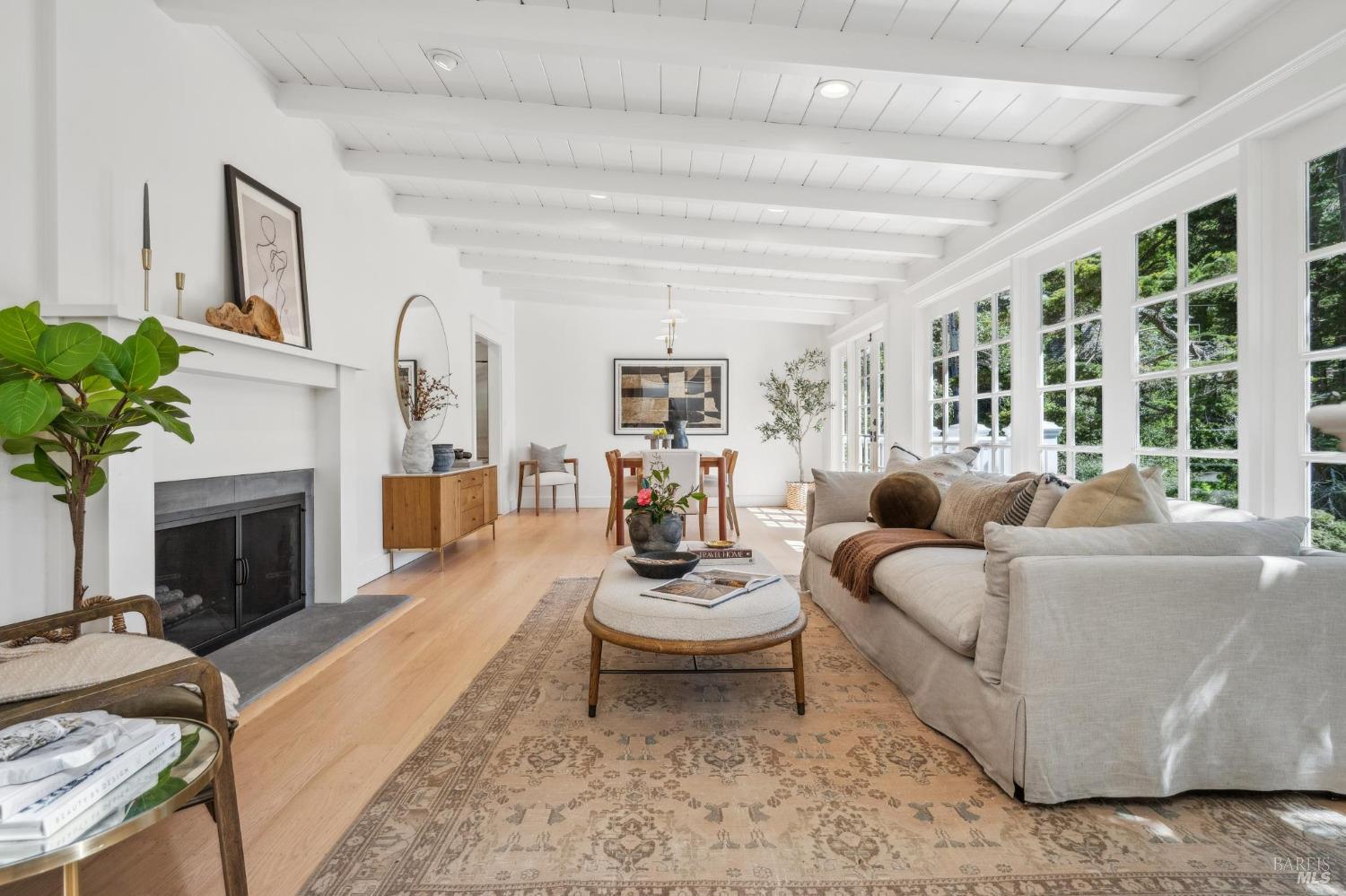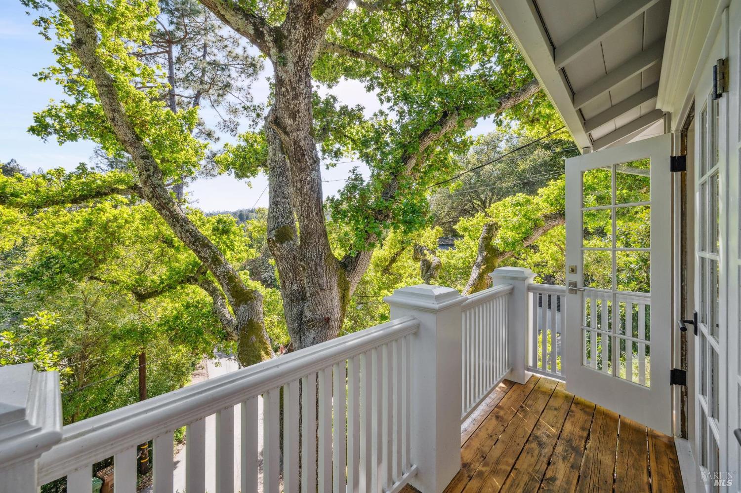 Welcome to 144 Woodbine, a sun-drenched retreat on a private half-acre lot in one of Mill Valley's most coveted weather pockets. Surrounded by majestic oaks, this beautiful 4 bedroom, 3 bath home offers the perfect blend of indoor-outdoor living and privacy. With approximately 3,397 sq.ft. (per architect) of inviting space, the home features hardwood floors, skylights, French windows, a double-sided fireplace, and built-in speakers. A stunning chef's kitchen opens to a cozy family/sitting room with French doors leading to the sunny patio, sparkling pool, and garden perfect for year-round entertaining. Beyond the pool, the backyard features multiple terraced levels of extended outdoor space. The expansive primary suite includes a walk-in closet, a private deck perched among the trees, and a spa-like bath with a soaking tub. Two additional bedrooms are on the main level, with a fourth bedroom and a media/play room with a built-in bar alcove on the lower level, ideal for guests, a home office, or movie nights. Moments from downtown and Mt. Tam trails, 144 Woodbine offers an unbeatable combination of privacy, convenience, and year-round outdoor adventure - truly the best of Mill Valley living.
