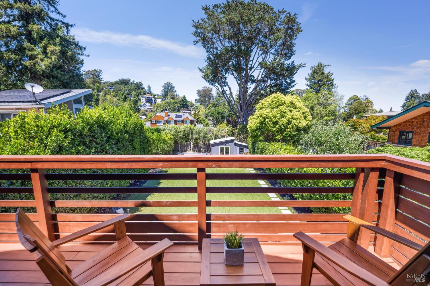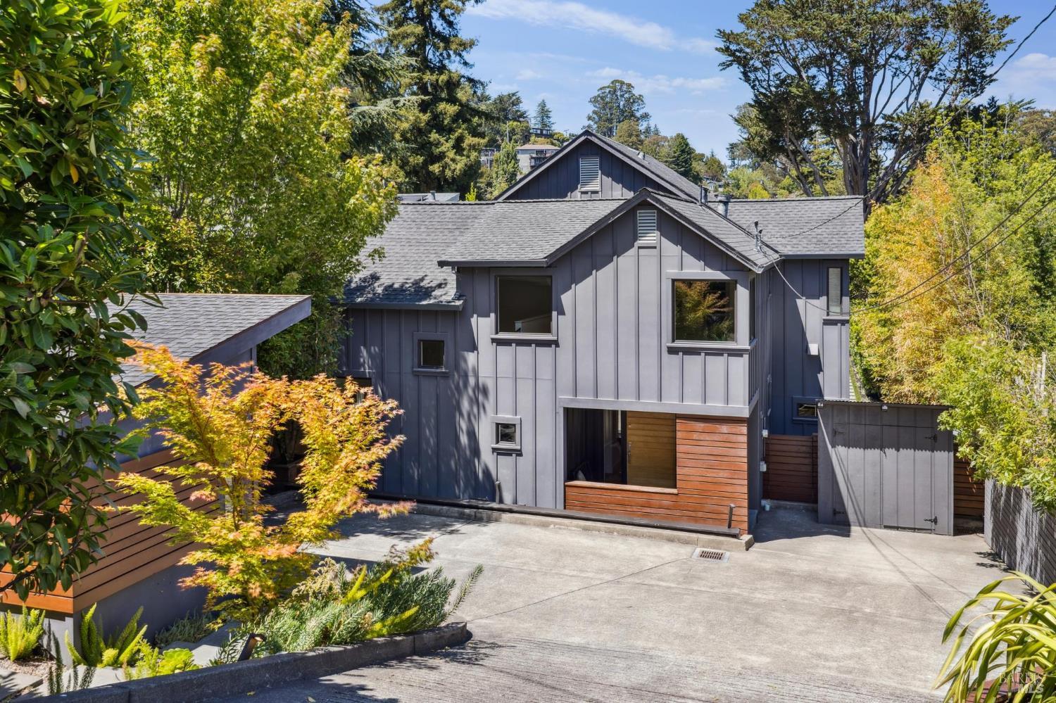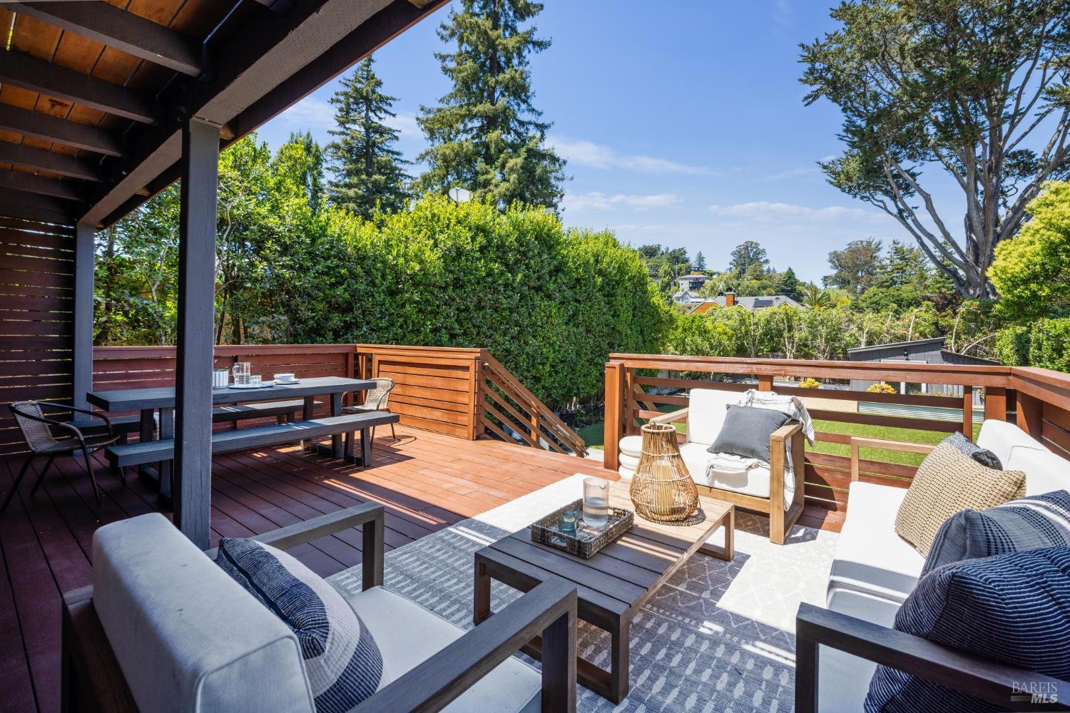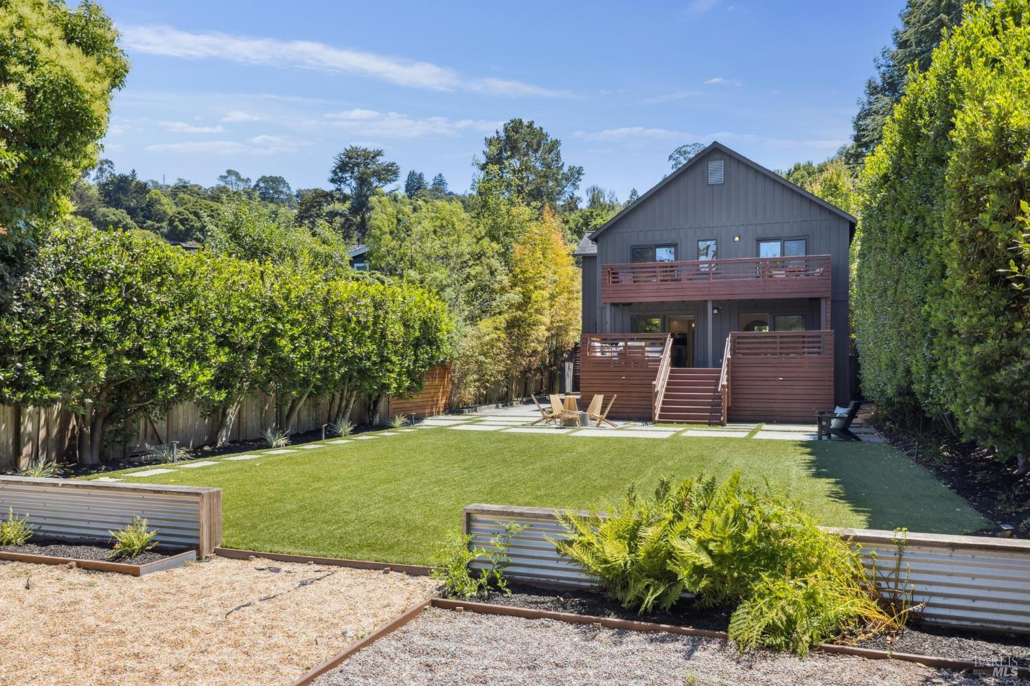 Welcome to 210 Laverne Avenue, a peaceful, sun-drenched retreat in one of Mill Valley's most sought-after neighborhoods. This beautifully updated 3BD/2.5BA home offers seamless indoor-outdoor living. The main level features an inviting living room with soaring ceilings that flows seamlessly into the formal dining area and open-concept chef's kitchen. Thoughtfully updated with modern finishes, the kitchen flows into a casual dining and family room that opens directly to a spacious deckperfect for al fresco meals and relaxed entertaining. Upstairs, you'll find three well-appointed bedrooms and two full baths, including a light-filled primary suite with a spa-like bathroom. Both the primary and second bedrooms open to a sunny deck. The expansive lot features a large, level lawn with eco-friendly turf and a vegetable and herb garden, creating space to relax, play, and grow. Two modern Dwell-style studios at the front and back of the property offer flexible space for a home office, creative space, and storage. The gated driveway accommodates multiple vehicles and enhances the property's privacy and convenience, all just a few blocks from downtown Mill Valley's vibrant shops, restaurants, and cafsand only minutes from Marin's world-class hiking and biking trails.