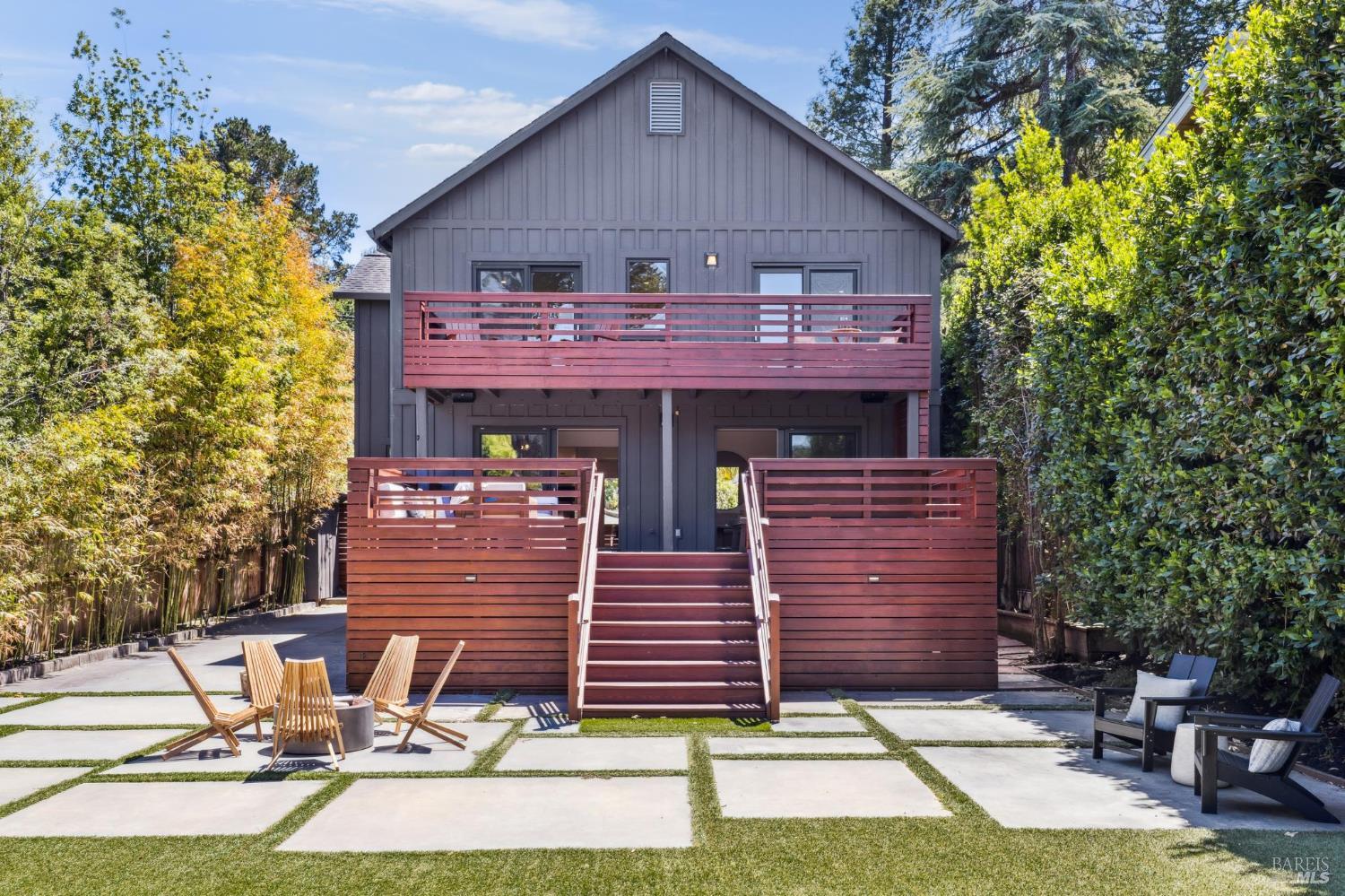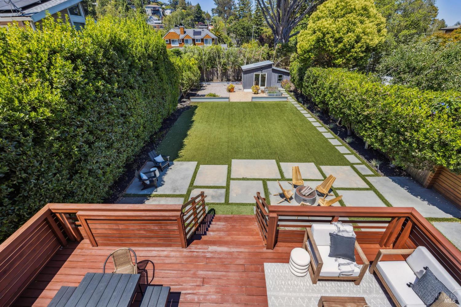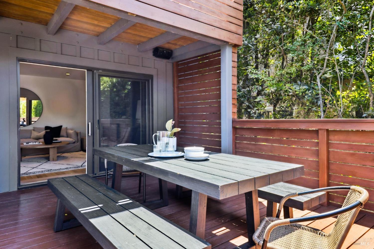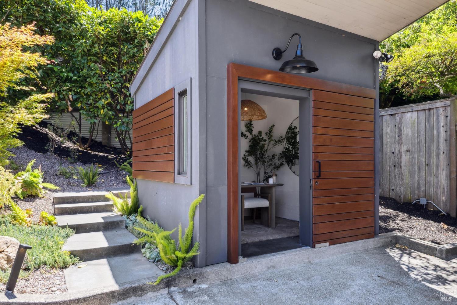 Welcome to 210 Laverne Avenue, a peaceful, sun-drenched retreat in one of Mill Valley's most sought-after neighborhoods. This beautifully updated 3BD/2.5BA home offers seamless indoor-outdoor living. The main level features an inviting living room with soaring ceilings that flows seamlessly into the formal dining area and open-concept chef's kitchen. Thoughtfully updated with modern finishes, the kitchen flows into a casual dining and family room that opens directly to a spacious deckperfect for al fresco meals and relaxed entertaining. Upstairs, you'll find three well-appointed bedrooms and two full baths, including a light-filled primary suite with a spa-like bathroom. Both the primary and second bedrooms open to a sunny deck. The expansive lot features a large, level lawn with eco-friendly turf and a vegetable and herb garden, creating space to relax, play, and grow. Two modern Dwell-style studios at the front and back of the property offer flexible space for a home office, creative space, and storage. The gated driveway accommodates multiple vehicles and enhances the property's privacy and convenience, all just a few blocks from downtown Mill Valley's vibrant shops, restaurants, and cafsand only minutes from Marin's world-class hiking and biking trails.