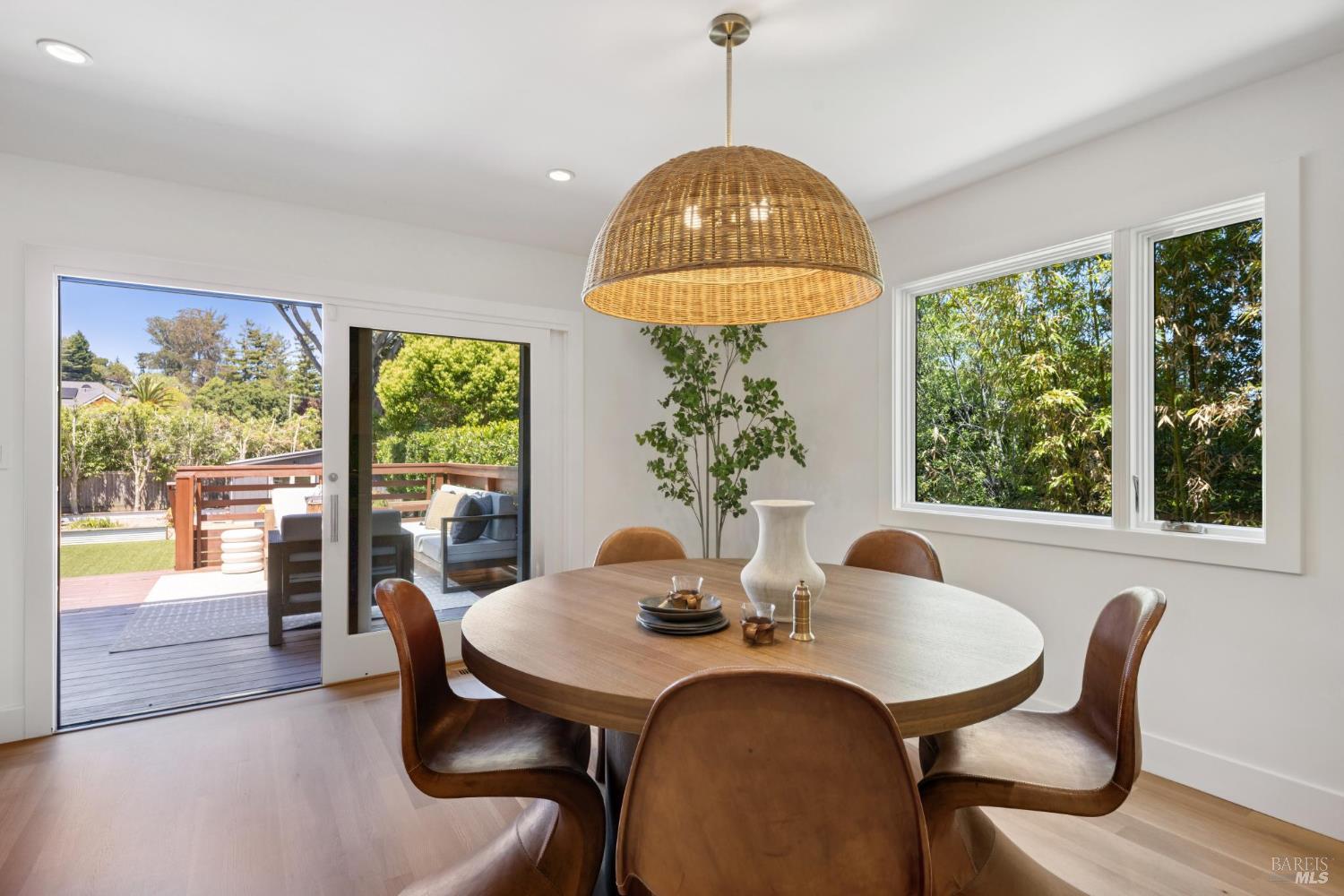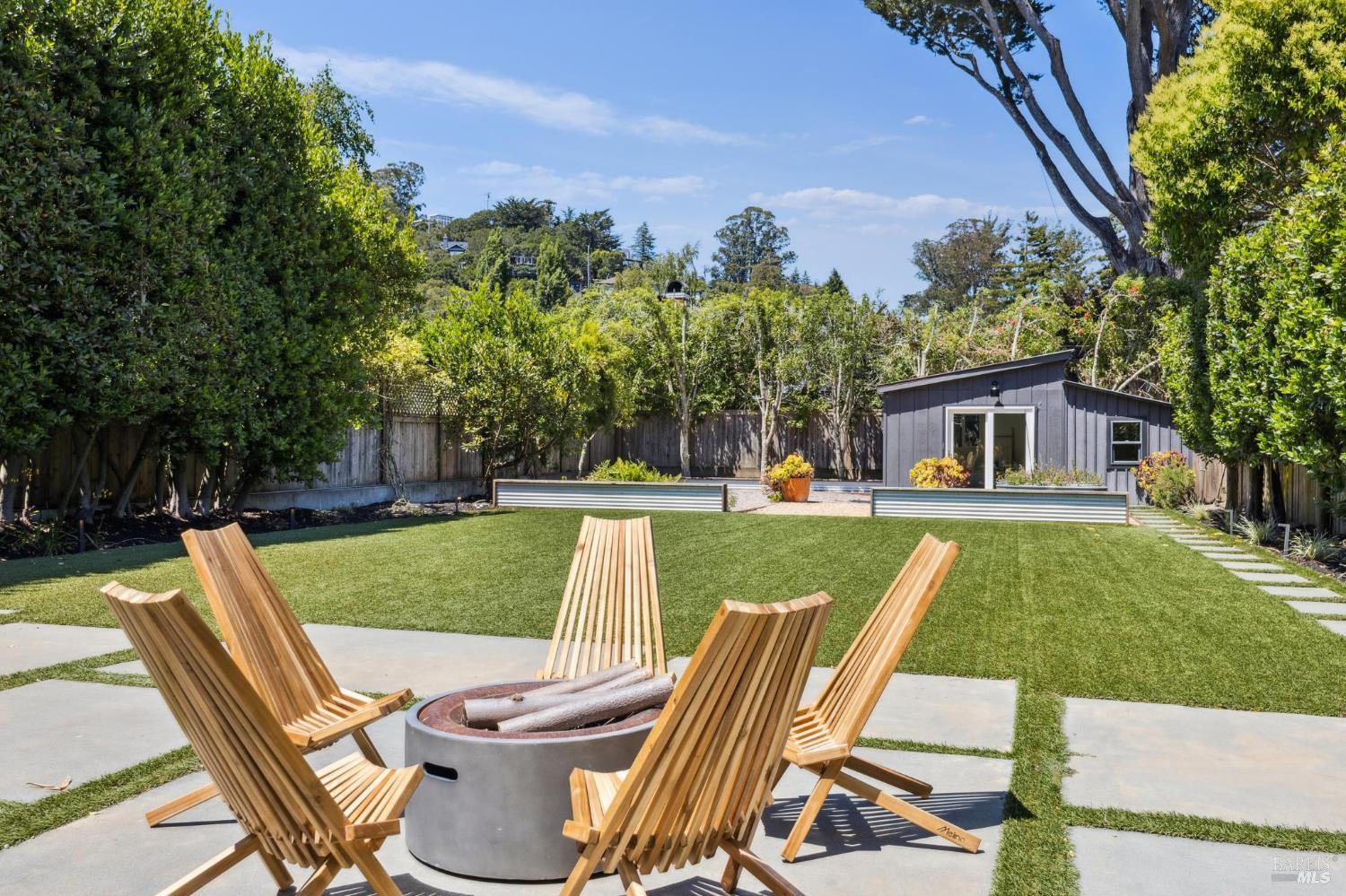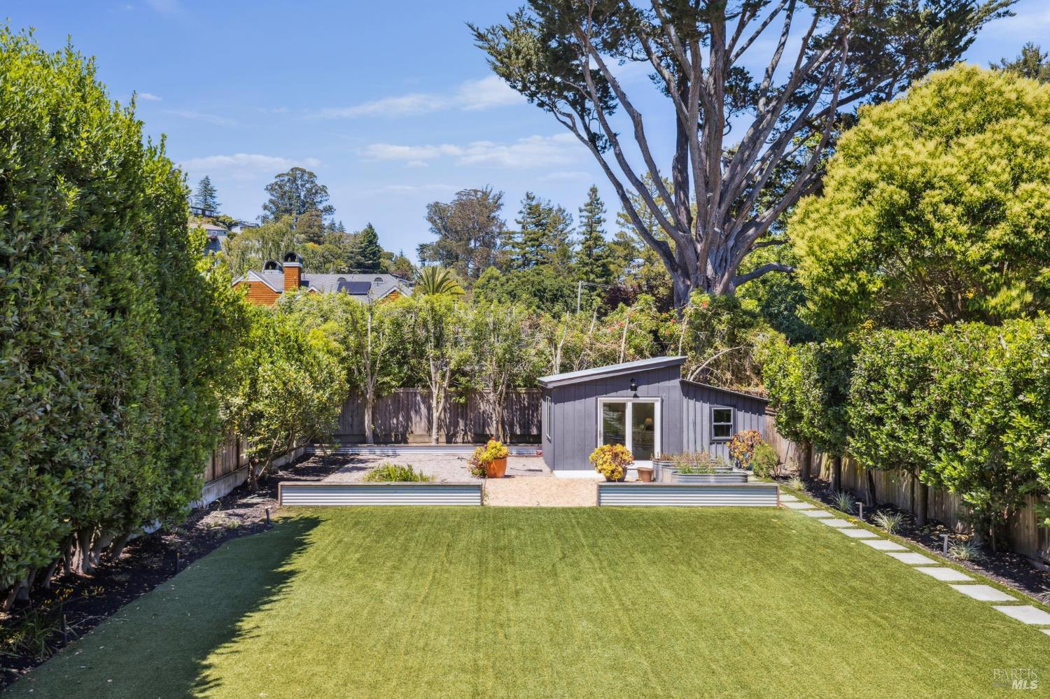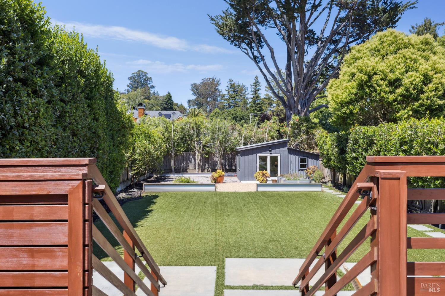 Welcome to 210 Laverne Avenue, a peaceful, sun-drenched retreat in one of Mill Valley's most sought-after neighborhoods. This beautifully updated 3BD/2.5BA home offers seamless indoor-outdoor living. The main level features an inviting living room with soaring ceilings that flows seamlessly into the formal dining area and open-concept chef's kitchen. Thoughtfully updated with modern finishes, the kitchen flows into a casual dining and family room that opens directly to a spacious deckperfect for al fresco meals and relaxed entertaining. Upstairs, you'll find three well-appointed bedrooms and two full baths, including a light-filled primary suite with a spa-like bathroom. Both the primary and second bedrooms open to a sunny deck. The expansive lot features a large, level lawn with eco-friendly turf and a vegetable and herb garden, creating space to relax, play, and grow. Two modern Dwell-style studios at the front and back of the property offer flexible space for a home office, creative space, and storage. The gated driveway accommodates multiple vehicles and enhances the property's privacy and convenience, all just a few blocks from downtown Mill Valley's vibrant shops, restaurants, and cafsand only minutes from Marin's world-class hiking and biking trails.