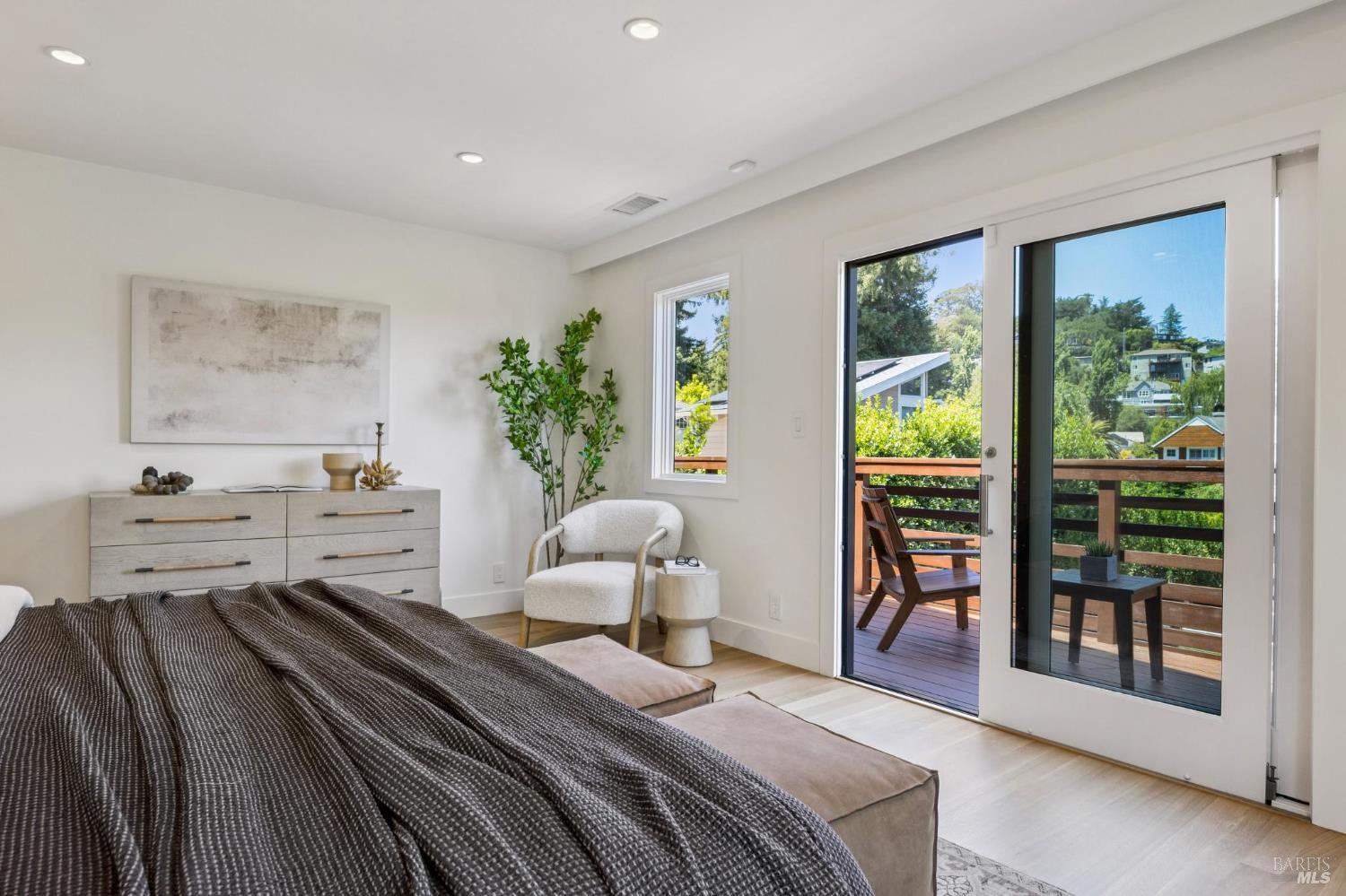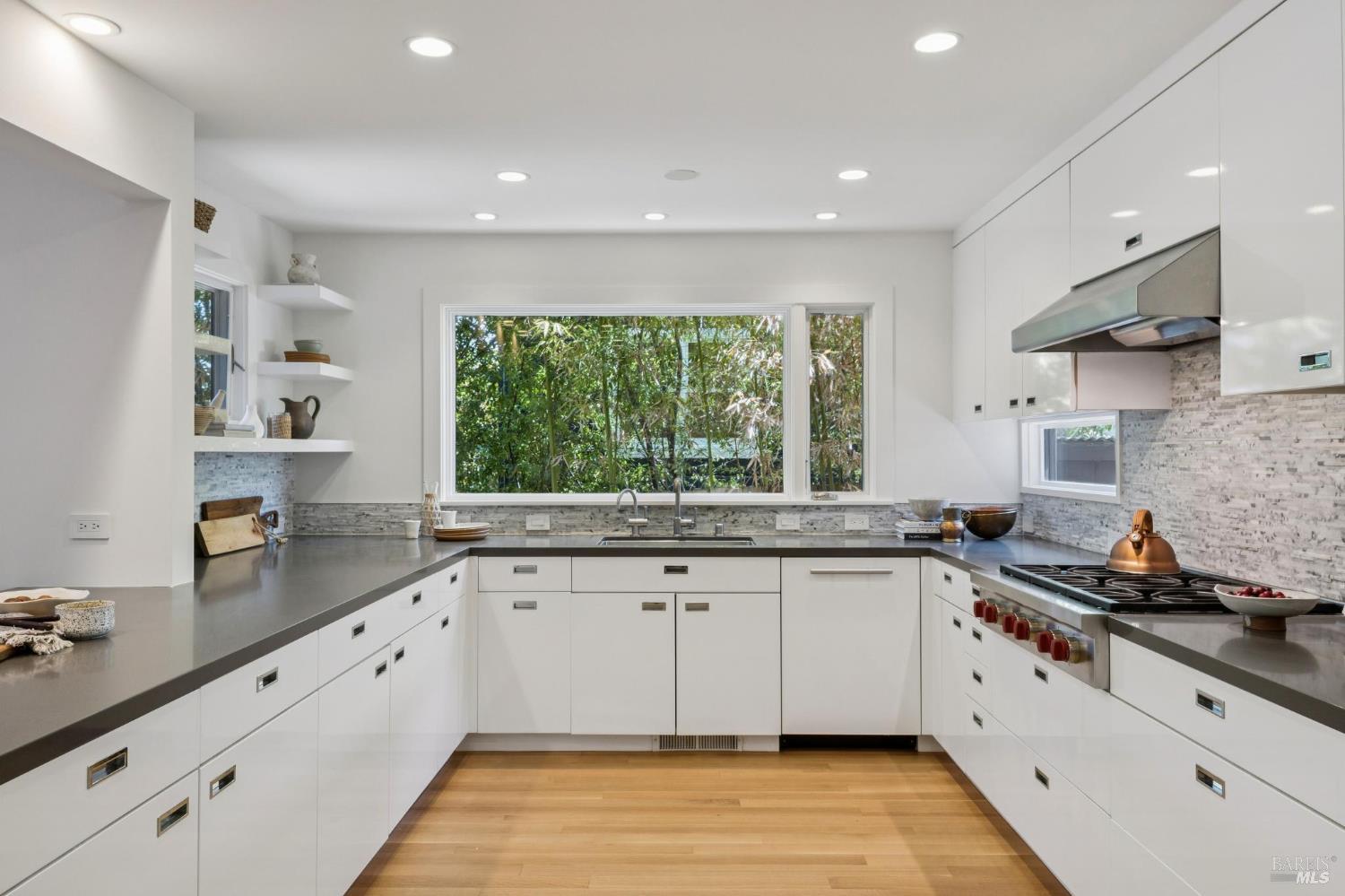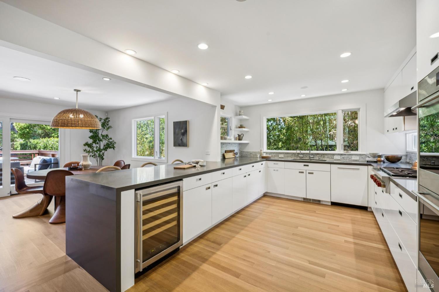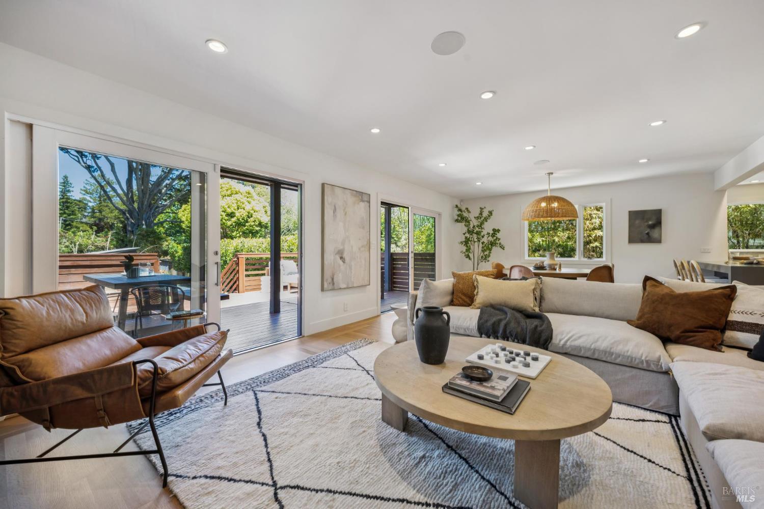 Welcome to 210 Laverne Avenue, a peaceful, sun-drenched retreat in one of Mill Valley's most sought-after neighborhoods. This beautifully updated 3BD/2.5BA home offers seamless indoor-outdoor living. The main level features an inviting living room with soaring ceilings that flows seamlessly into the formal dining area and open-concept chef's kitchen. Thoughtfully updated with modern finishes, the kitchen flows into a casual dining and family room that opens directly to a spacious deckperfect for al fresco meals and relaxed entertaining. Upstairs, you'll find three well-appointed bedrooms and two full baths, including a light-filled primary suite with a spa-like bathroom. Both the primary and second bedrooms open to a sunny deck. The expansive lot features a large, level lawn with eco-friendly turf and a vegetable and herb garden, creating space to relax, play, and grow. Two modern Dwell-style studios at the front and back of the property offer flexible space for a home office, creative space, and storage. The gated driveway accommodates multiple vehicles and enhances the property's privacy and convenience, all just a few blocks from downtown Mill Valley's vibrant shops, restaurants, and cafsand only minutes from Marin's world-class hiking and biking trails.