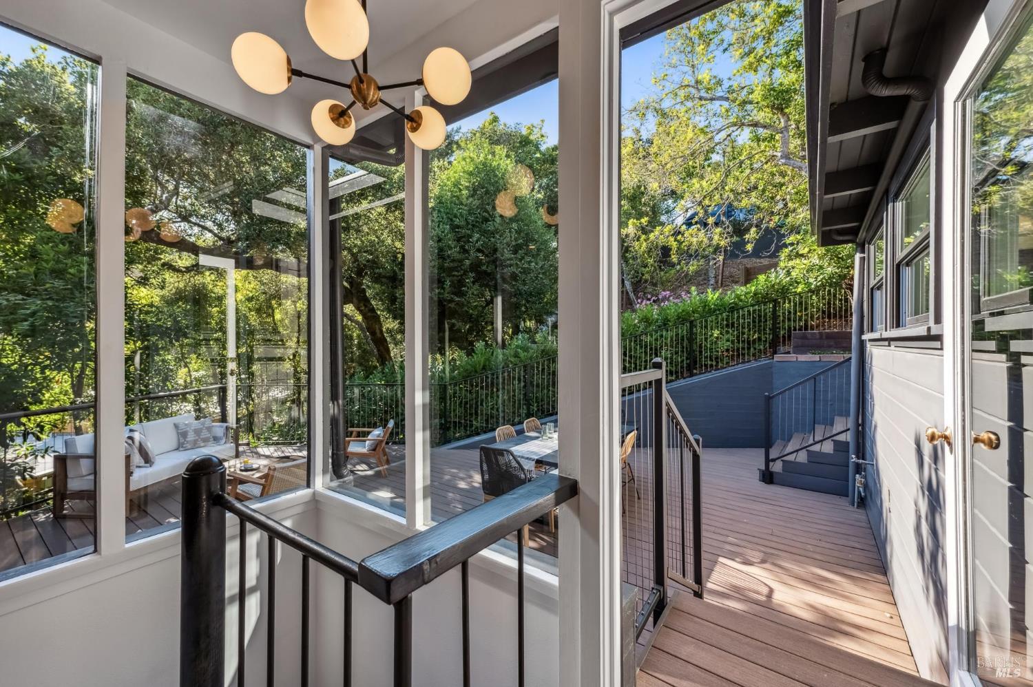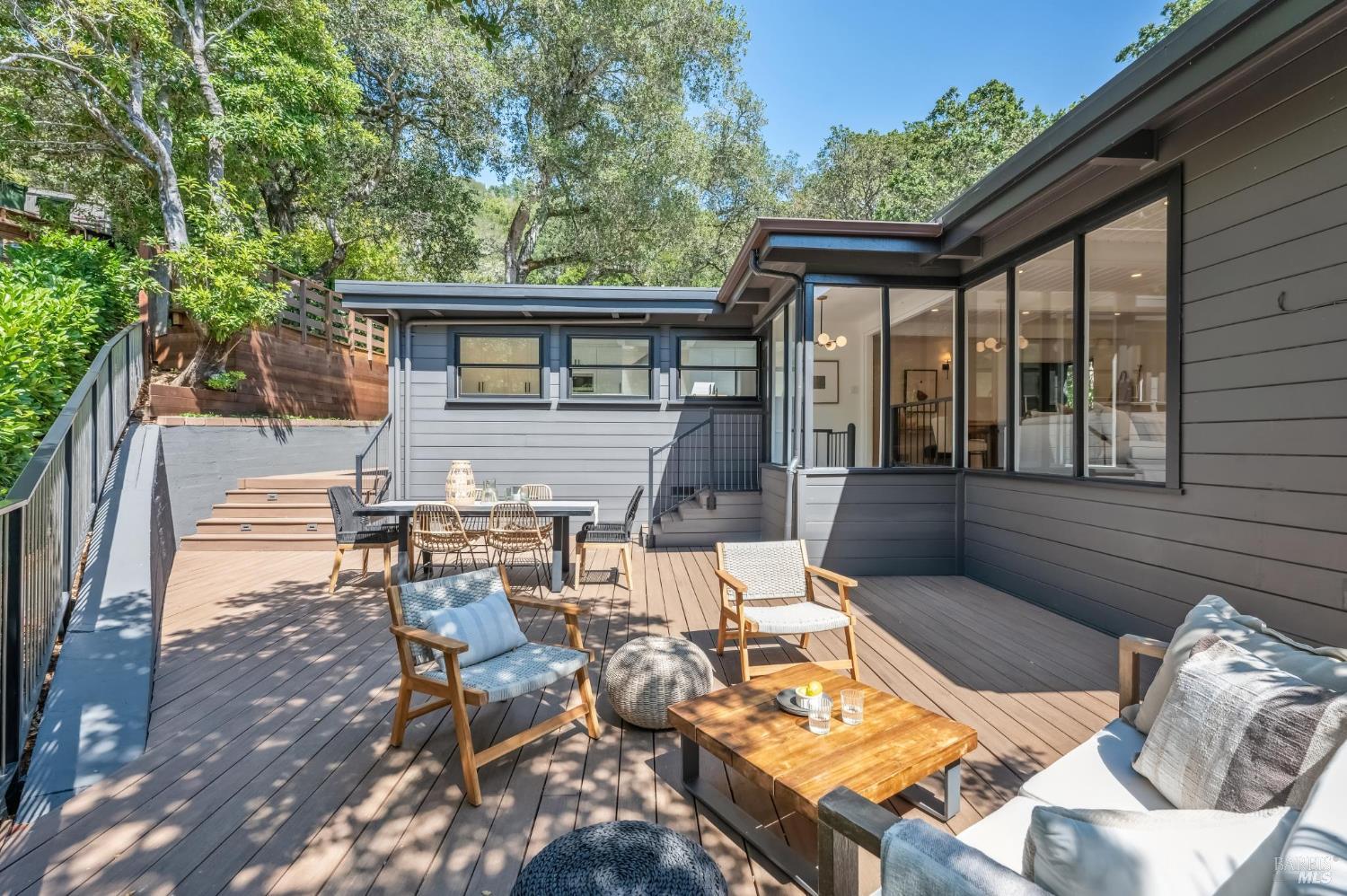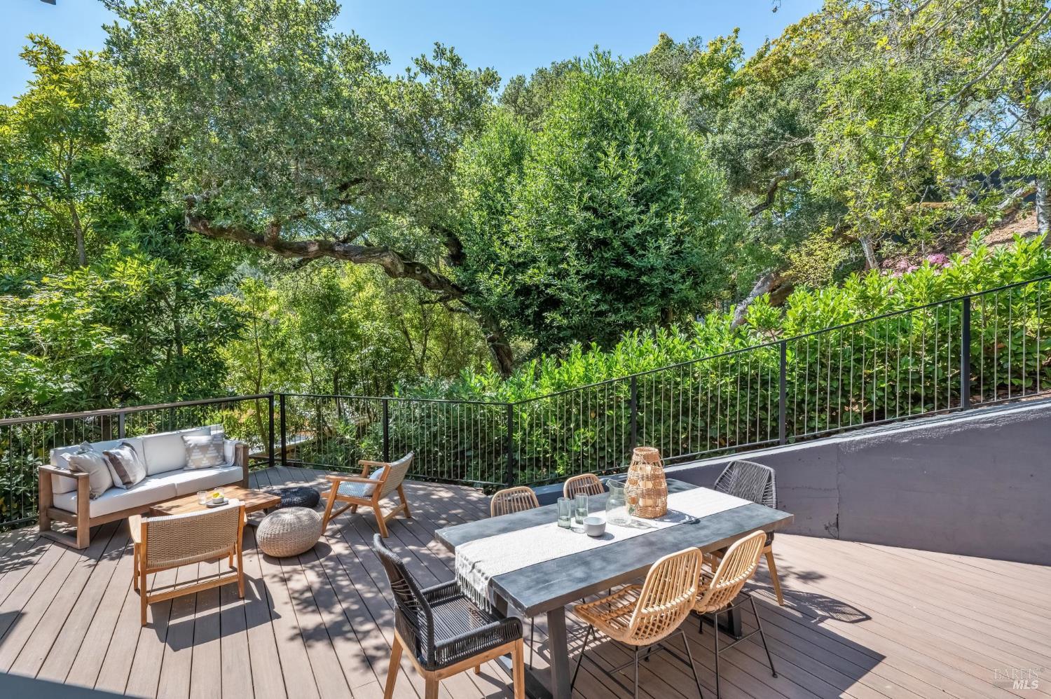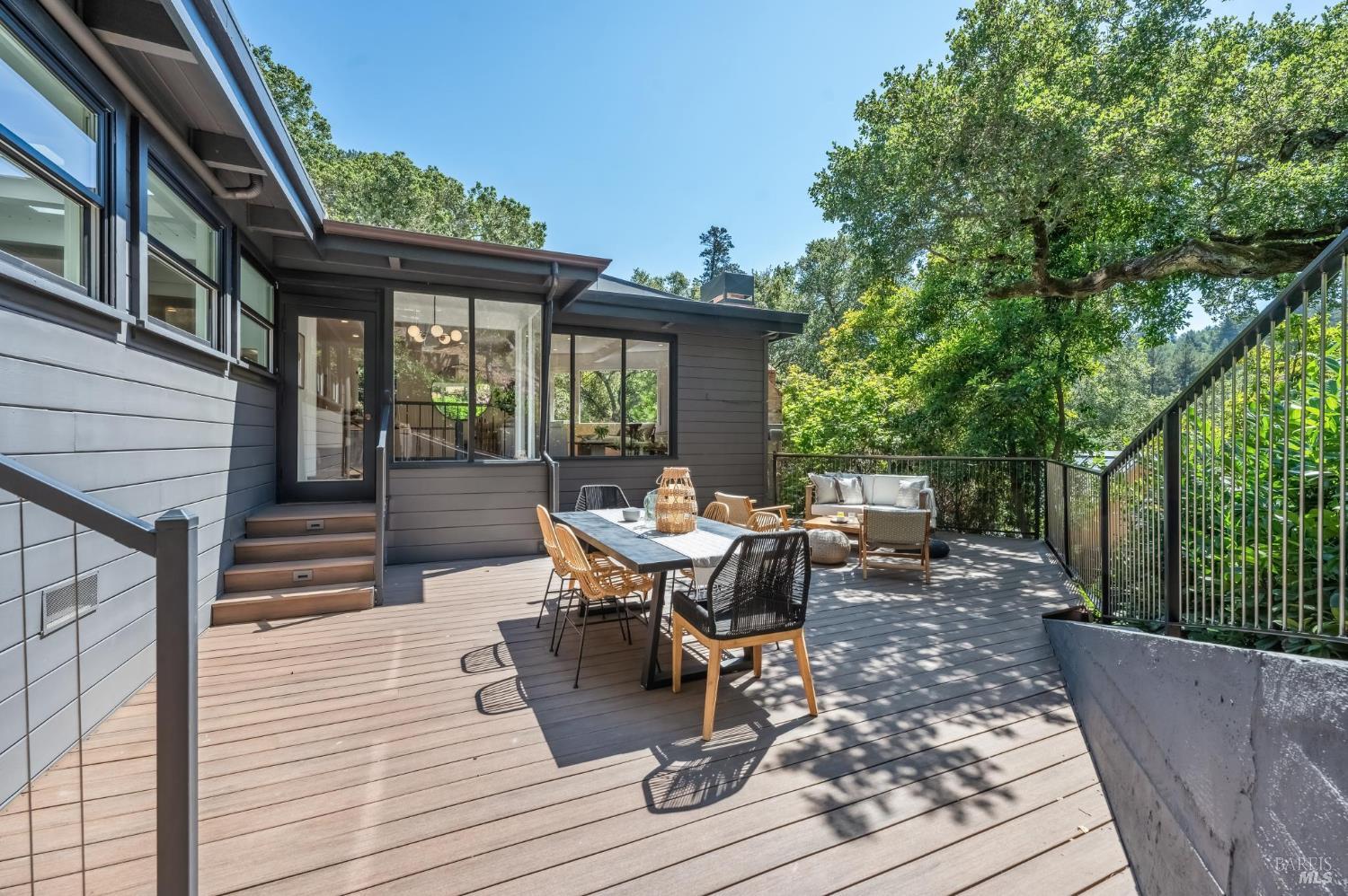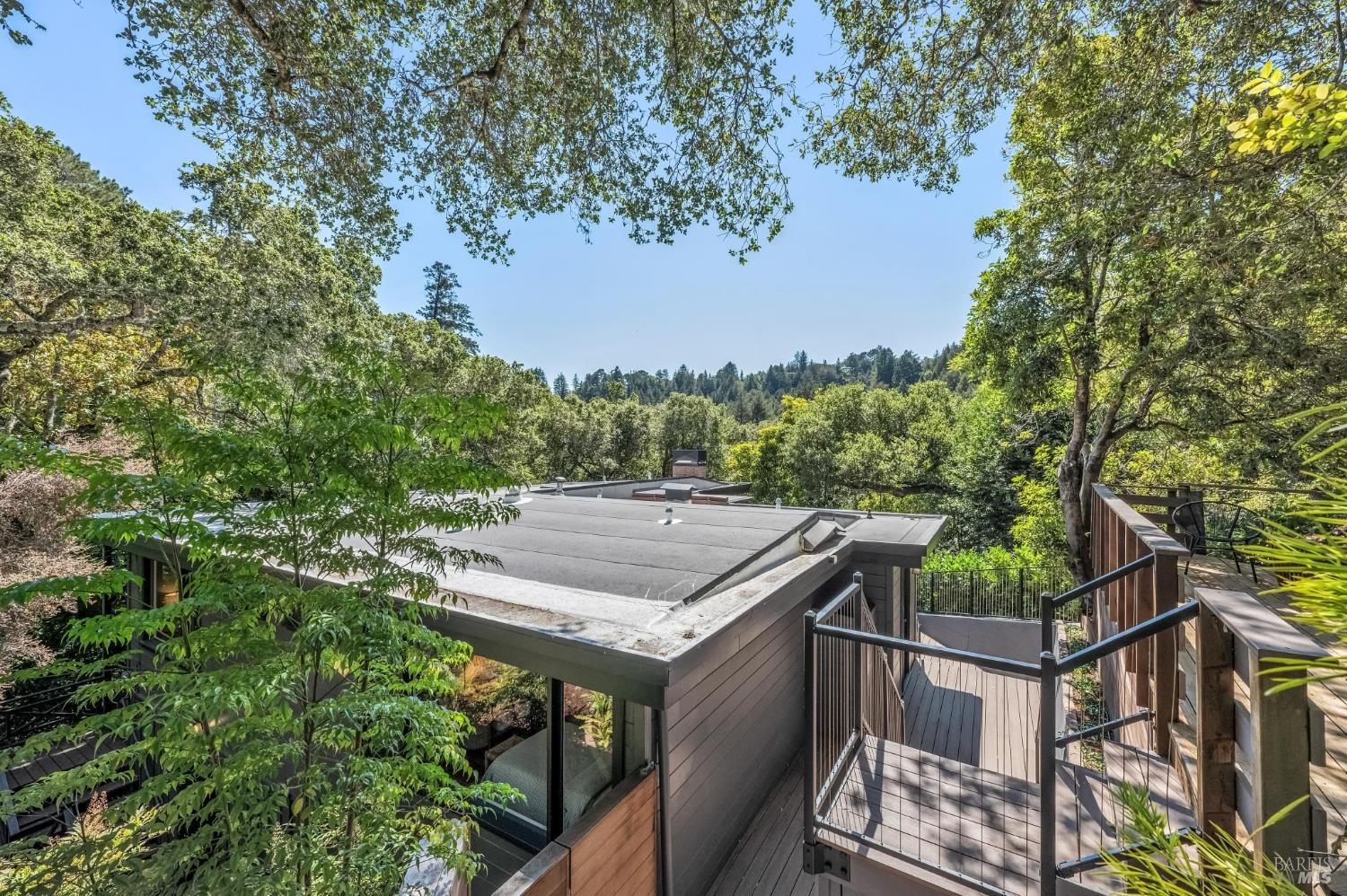 Welcome to 27 Cottage Avenue a beautiful 3-bedroom, 3-bath Mid-Century home where nature and convenience meet. Nestled among heritage oaks and colorful maples, this tranquil retreat is only a pleasant stroll from downtown Mill Valley. The main level features sunlit living and dining areas that are open and bright, with walls of windows seamlessly connecting to the outdoors. The chef's kitchen, with skylights, windows, and abundant cabinetry, creates the perfect setting for cooking and entertaining. This level also includes an en-suite second bedroom, a third bedroom, and an additional full bath. A striking spiral staircase leads to the peaceful and private primary suite on the lower level, opening to a deck perfect for morning coffee, plus an office/laundry room with convenient access to the driveway offering ample parking. Outdoor living is a true highlight, with a spacious rear deck off the main living space and an upper deck offering multiple options for al fresco dining, entertaining, or simply relaxing among the trees. Just a short stroll to the boutiques, cafes, and restaurants of downtown Mill Valley. Enjoy easy access to the many hiking and biking routes that make Mill Valley so desirable along with top-rated schools, a vibrant arts scene, and true small-town charm.