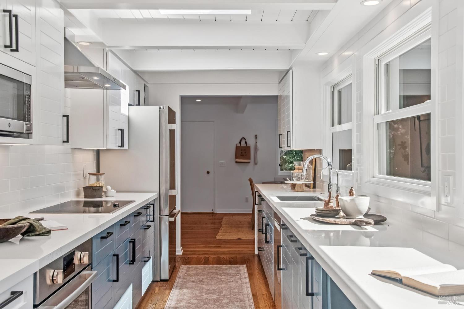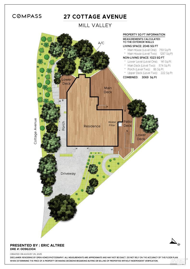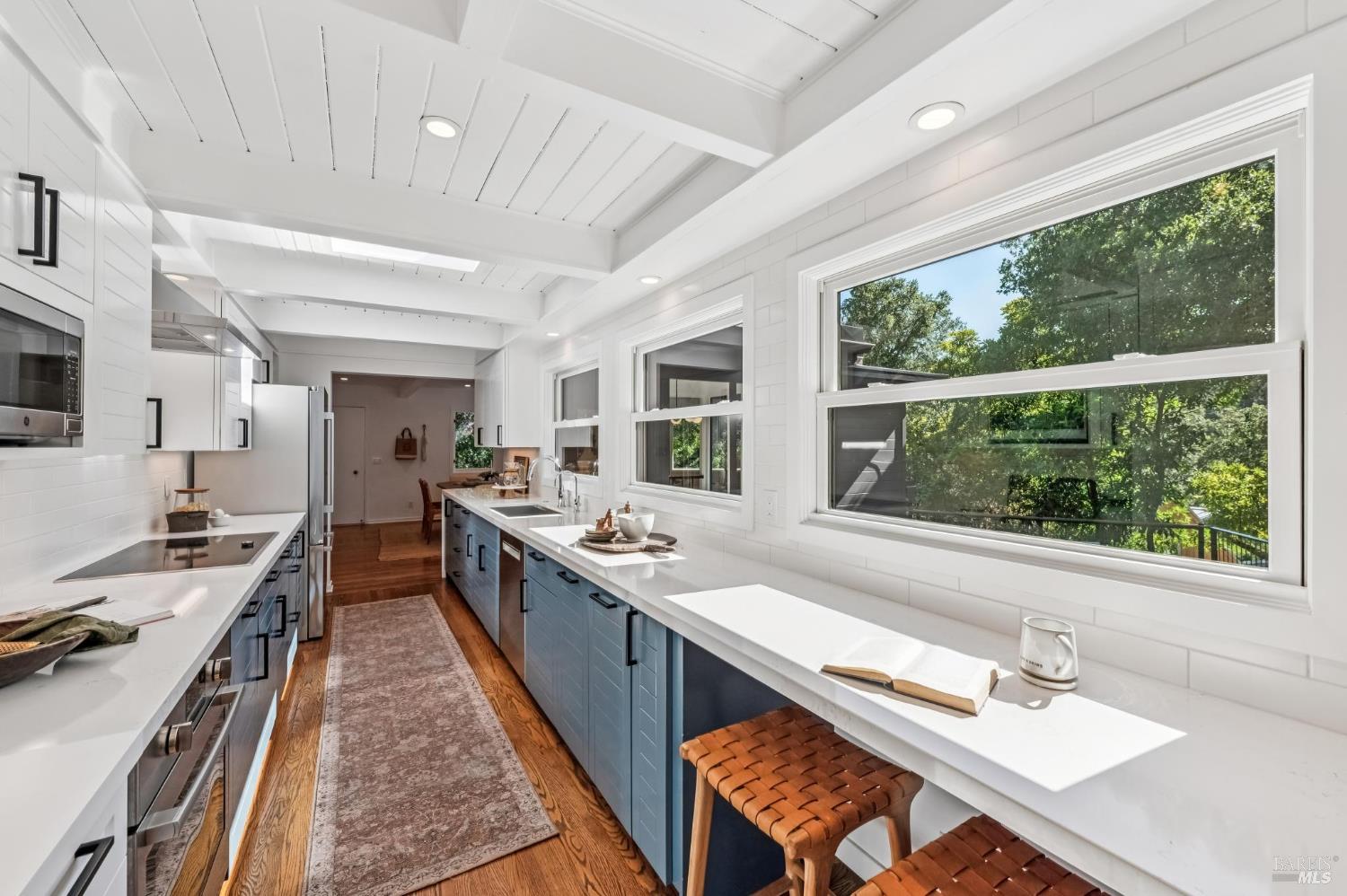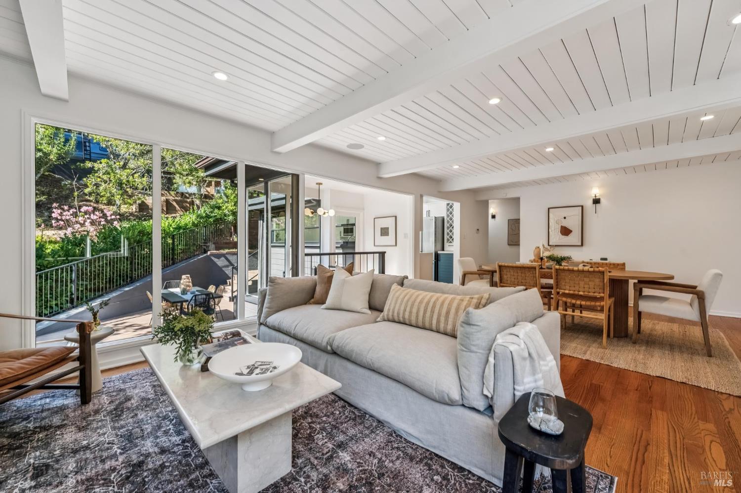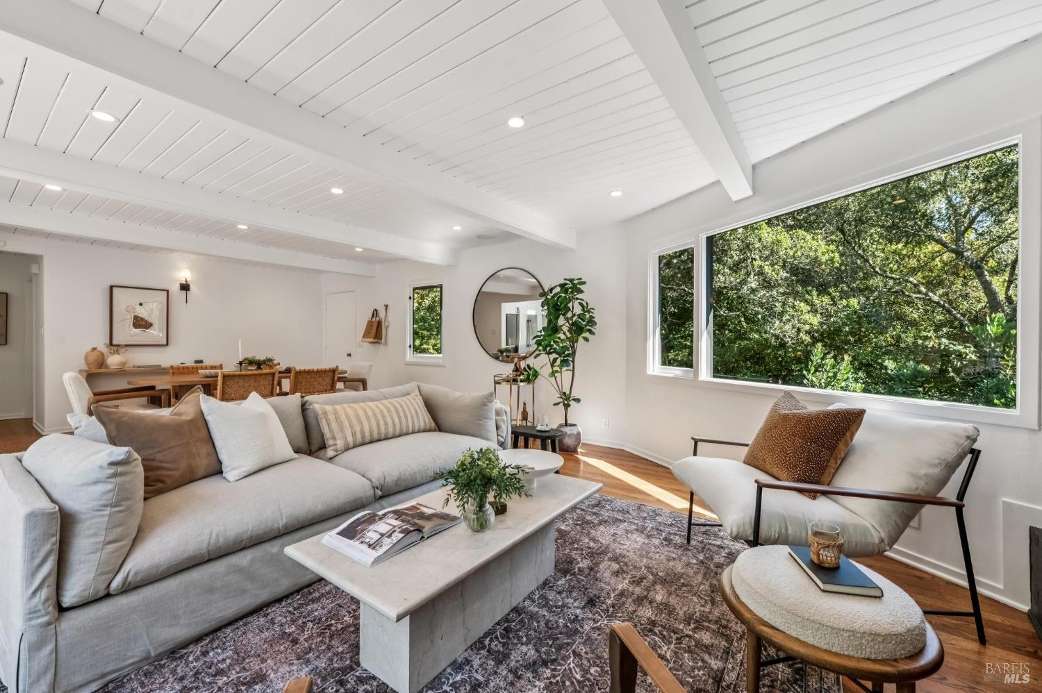 Welcome to 27 Cottage Avenue a beautiful 3-bedroom, 3-bath Mid-Century home where nature and convenience meet. Nestled among heritage oaks and colorful maples, this tranquil retreat is only a pleasant stroll from downtown Mill Valley. The main level features sunlit living and dining areas that are open and bright, with walls of windows seamlessly connecting to the outdoors. The chef's kitchen, with skylights, windows, and abundant cabinetry, creates the perfect setting for cooking and entertaining. This level also includes an en-suite second bedroom, a third bedroom, and an additional full bath. A striking spiral staircase leads to the peaceful and private primary suite on the lower level, opening to a deck perfect for morning coffee, plus an office/laundry room with convenient access to the driveway offering ample parking. Outdoor living is a true highlight, with a spacious rear deck off the main living space and an upper deck offering multiple options for al fresco dining, entertaining, or simply relaxing among the trees. Just a short stroll to the boutiques, cafes, and restaurants of downtown Mill Valley. Enjoy easy access to the many hiking and biking routes that make Mill Valley so desirable along with top-rated schools, a vibrant arts scene, and true small-town charm.