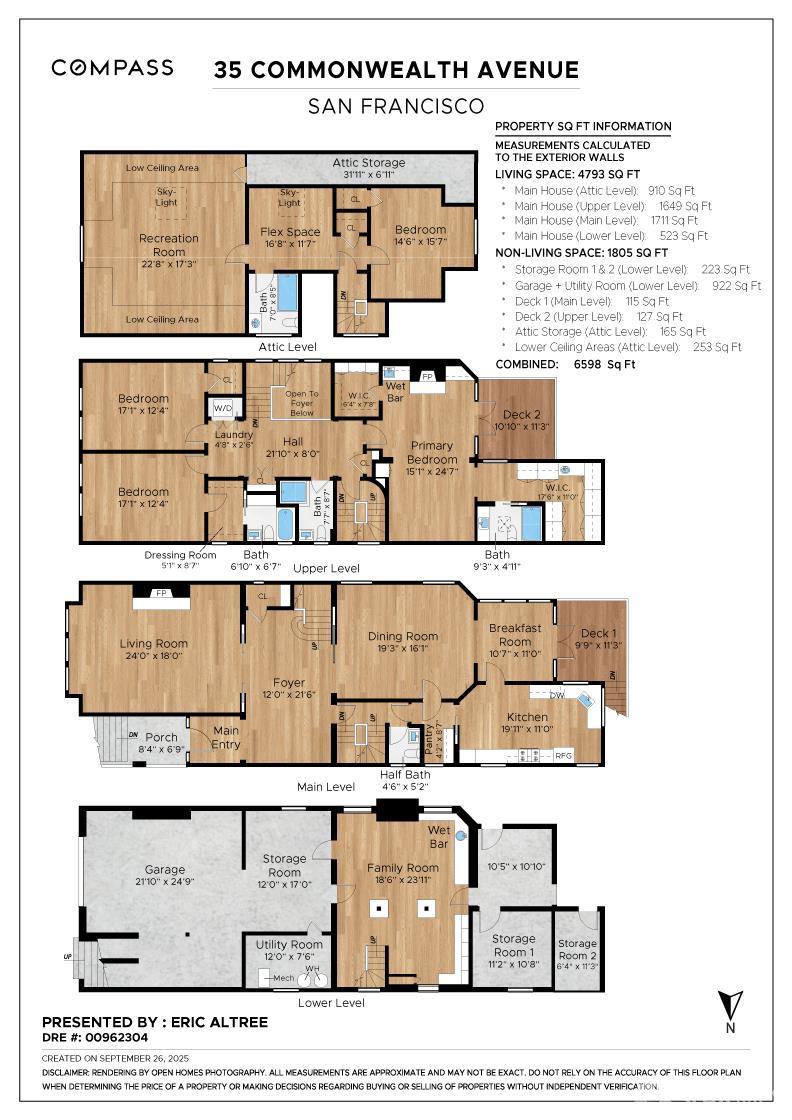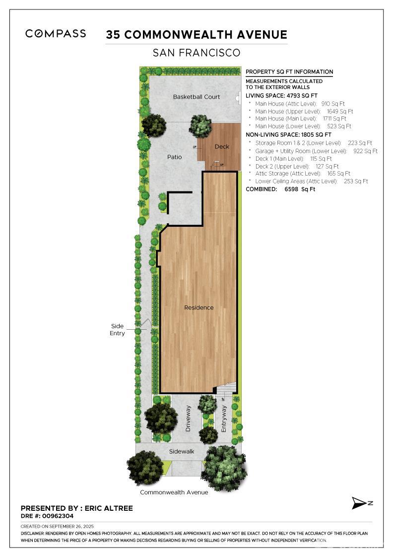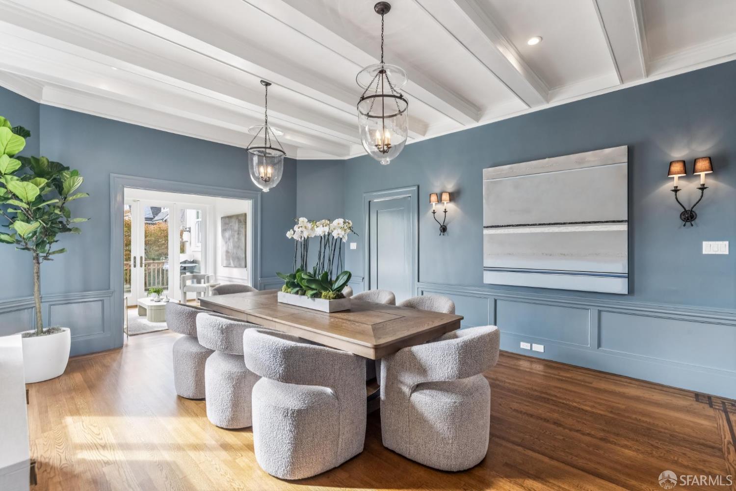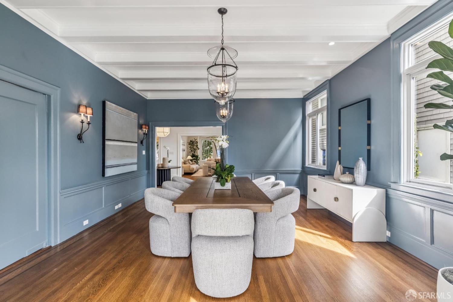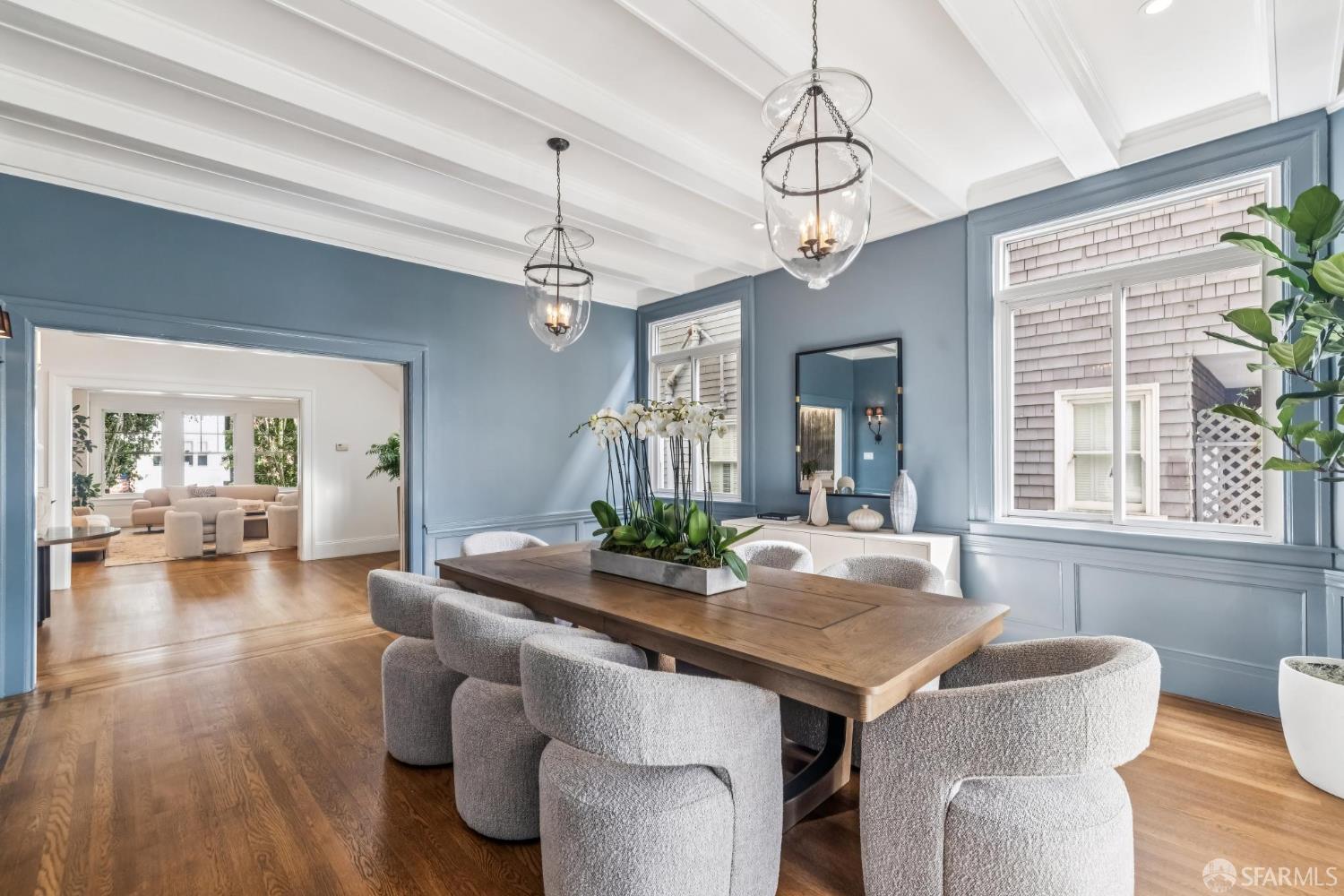 Welcome to 35 Commonwealth, where timeless San Francisco architecture meets contemporary luxury. Set on one of Jordan Park's rare wide parcels, this fully detached estate offers nearly 4,800 sq.ft. across four levels on a 3,998 sq.ft. lot. Flooded with natural light, the main level is designed for grand entertaining and everyday ease, featuring a formal living room with fireplace, gracious dining room, and spacious chef's kitchen with stainless appliances. A bright sunroom/family area flows to a deck ideal for al fresco dining with steps to a lower deck and landscaped backyard. Upstairs, the private level offers three bedrooms and three baths, including a serene primary suite with private balcony, multiple walk-in closets, and spa-inspired bath. A secondary suite with walk-in closet, third bedroom, and laundry complete this floor. The top level adds versatility with a family/media room, fourth bedroom, full bath, and office. Outdoors, a rare city luxury awaits: a private basketball/sport court doubling as a generous patio, plus a two-car garage and abundant storage. Enjoy a location defined by neighborhood charm and convenience, moments from Sacramento Street, Laurel Village, the Presidio, excellent schools, and commuter access.