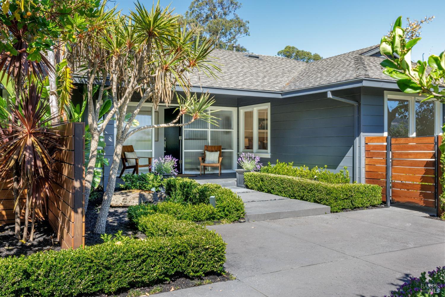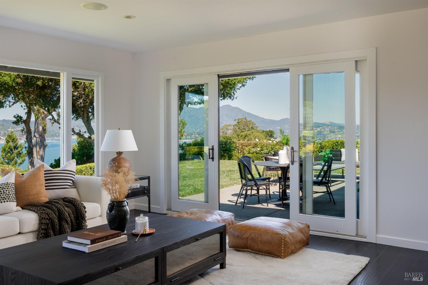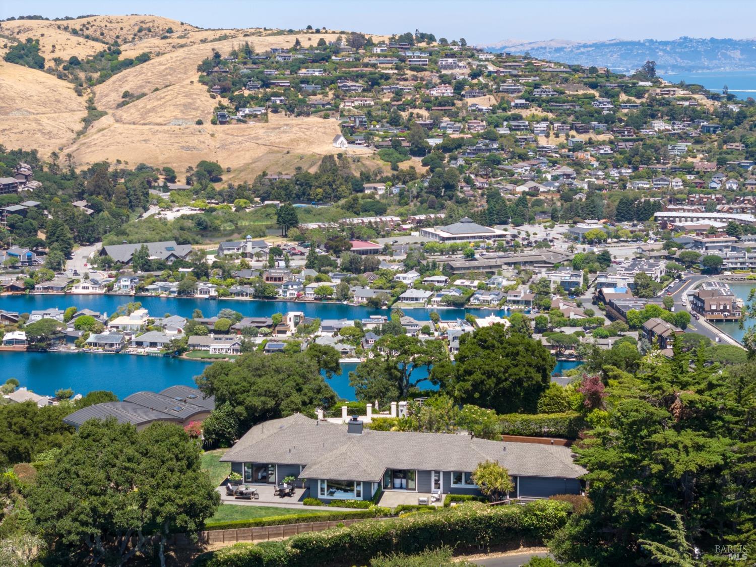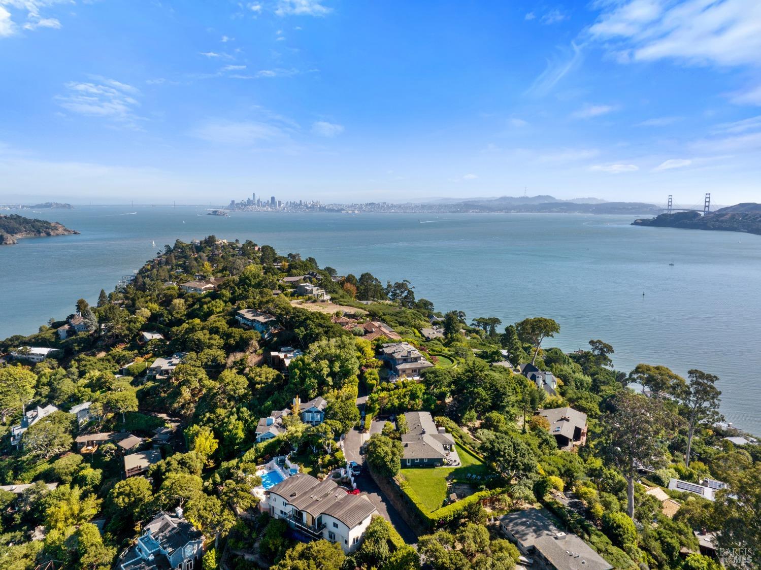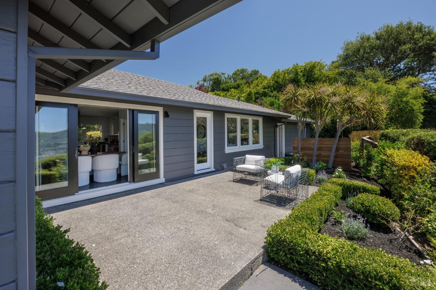Situated on nearly half an acre on one of Belvedere Island's most sought-after west side streets, this extraordinary mid-century single-story residence boasts a level and private site, an easy layout, and sweeping views of Sausalito, Richardson Bay, Mt.Tam, the Golden Gate Bridge towers, and the surrounding vistas. The outdoor living spaces are an entertainer's dream, featuring an expansive backyard with a sprawling lawn, multiple patios, manicured landscaping, privacy hedges, rose bushes, raised garden beds, and panoramic views. This one-of-a-kind location provides an incredible opportunity to build your dream home or thoughtfully renovate the current single-level residence, with the potential for multiple ADUs. The open and airy living room features a fireplace, sliding glass doors opening to the outdoors, and oversized windows framing picturesque views. Functional and open kitchen with a center island with counter seating, newly painted cabinetry, and stainless steel appliances. Spacious family room with expansive windows offering stunning views and outdoor access. The primary suite features captivating views, a walk-in closet, 2 built-in wardrobe closets, and sliding glass doors leading to the entertainment patio. Attached 2 car garage and motor court.