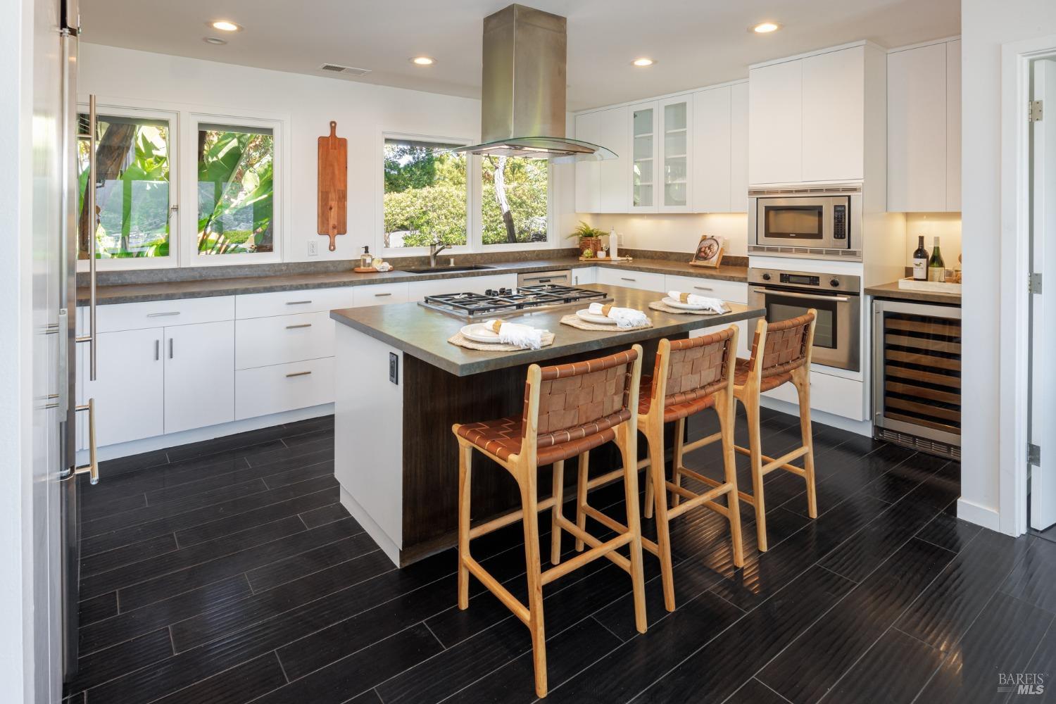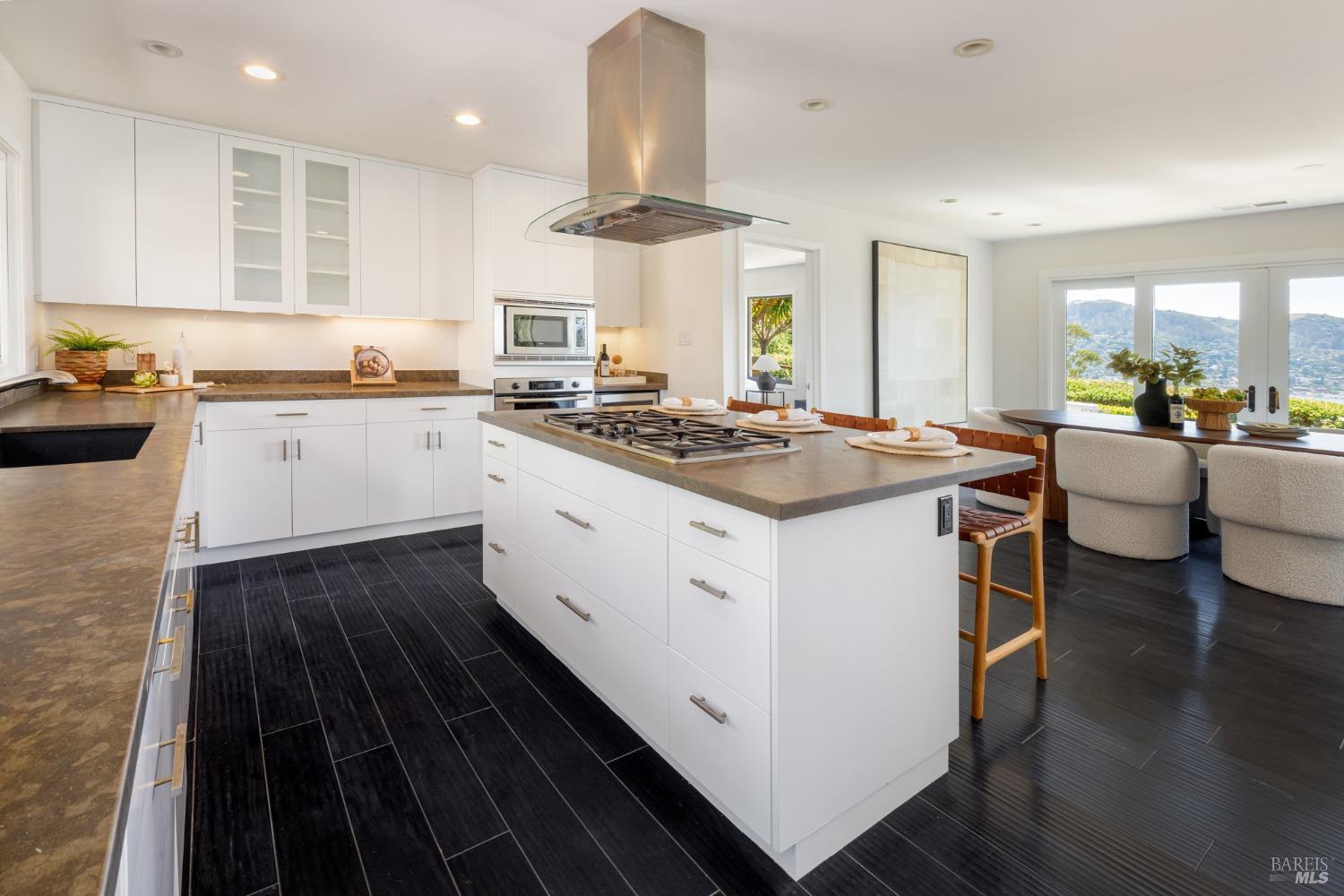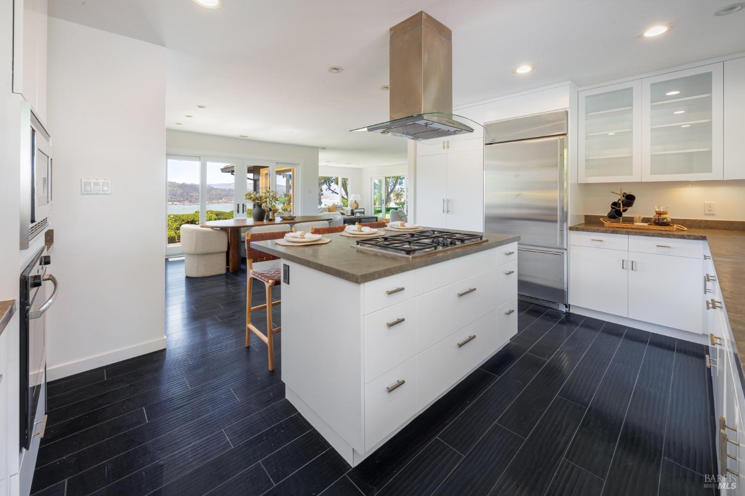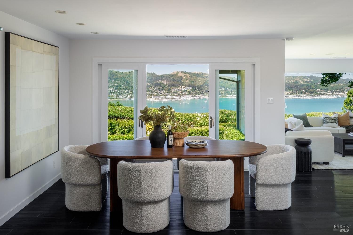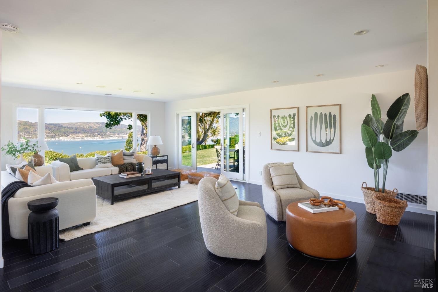 Situated on nearly half an acre on one of Belvedere Island's most sought-after west side streets, this extraordinary mid-century single-story residence boasts a level and private site, an easy layout, and sweeping views of Sausalito, Richardson Bay, Mt.Tam, the Golden Gate Bridge towers, and the surrounding vistas. The outdoor living spaces are an entertainer's dream, featuring an expansive backyard with a sprawling lawn, multiple patios, manicured landscaping, privacy hedges, rose bushes, raised garden beds, and panoramic views. This one-of-a-kind location provides an incredible opportunity to build your dream home or thoughtfully renovate the current single-level residence, with the potential for multiple ADUs. The open and airy living room features a fireplace, sliding glass doors opening to the outdoors, and oversized windows framing picturesque views. Functional and open kitchen with a center island with counter seating, newly painted cabinetry, and stainless steel appliances. Spacious family room with expansive windows offering stunning views and outdoor access. The primary suite features captivating views, a walk-in closet, 2 built-in wardrobe closets, and sliding glass doors leading to the entertainment patio. Attached 2 car garage and motor court.