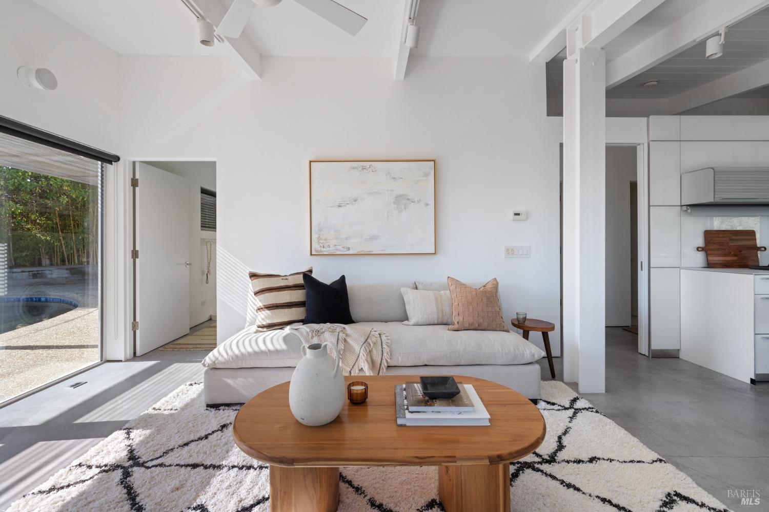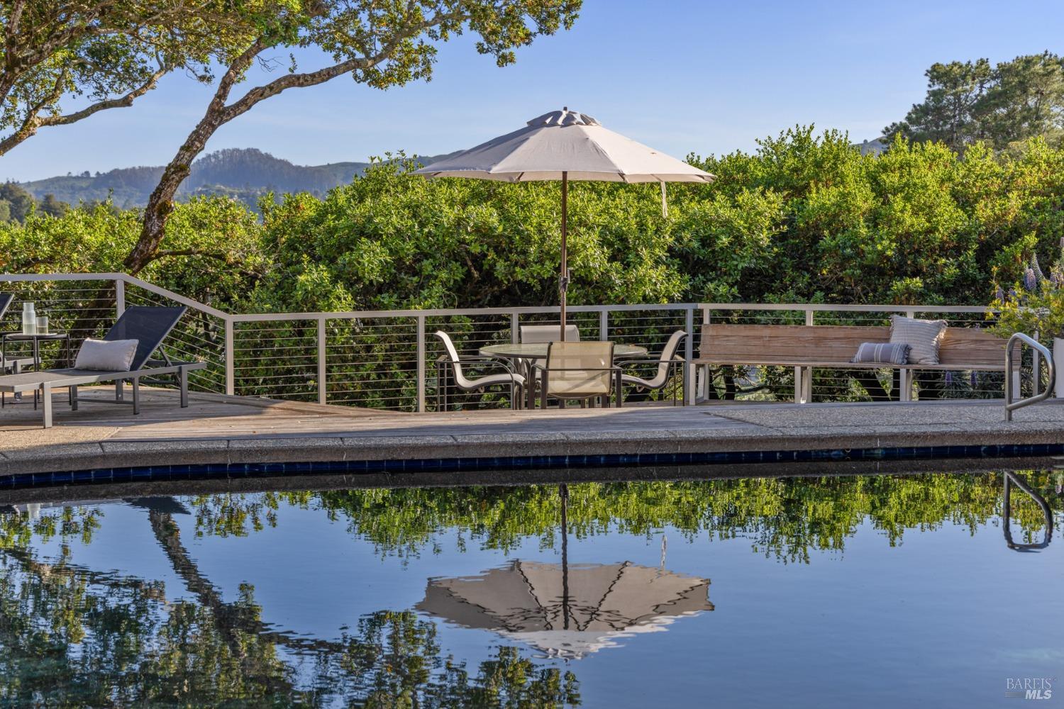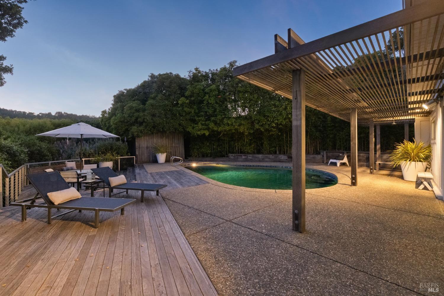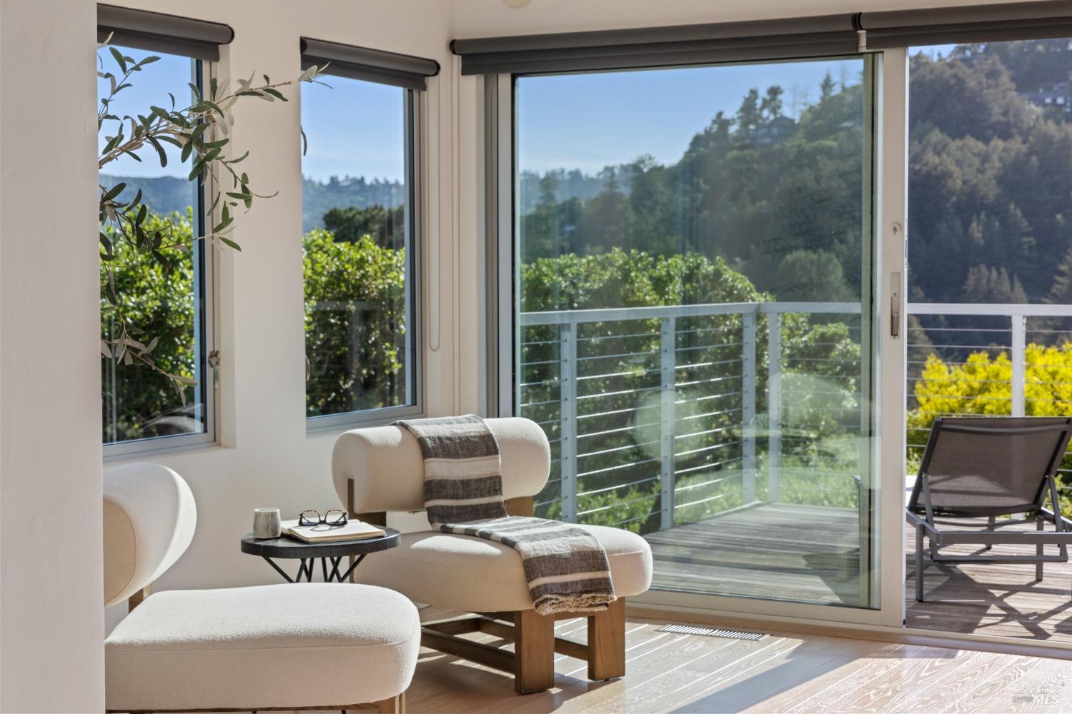 Welcome to 7 Sarah Drive, an architectural gem in Mill Valley's coveted Country Club neighborhood. Designed by acclaimed Edmonds + Lee Architects, this timeless 4-bedroom, 3-bathroom residence blends sophisticated design, natural light, and resort-style living. Perfectly sited to capture sweeping valley views and all-day southern sun, the home features walls of sliding glass that dissolve the boundary between indoors and out. The main level offers a dramatic entry foyer, expansive living room, imported custom kitchen, open dining and family room, two stylish bedrooms, a full bathroom, plus a guest-ready laundry/pool bath. Upstairs, the sun-drenched primary suite is a true retreat with spa-inspired finishes, Carrera marble, and a private oversized deck for lounging or entertaining. An additional bedroom is ideal for a home office or nursery. The resort-like grounds include a wraparound ipe deck, sleek courtyard with custom water feature, sparkling pool, outdoor sauna, and shower. Radiant-heated concrete floors, luxury finishes throughout, ample parking, and a 2-car carport with secure storage complete this special offering. A rare opportunity to live beautifully, luxuriously, and completely connected to nature in one of Mill Valley's most desirable enclaves.