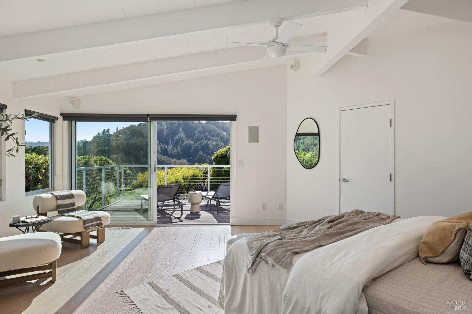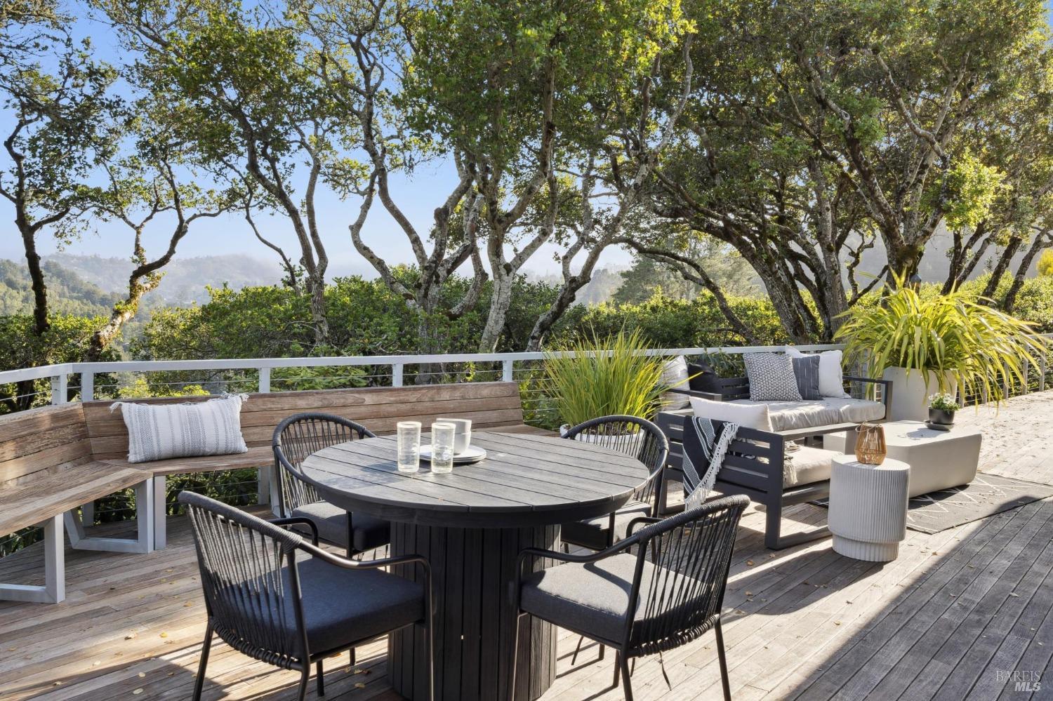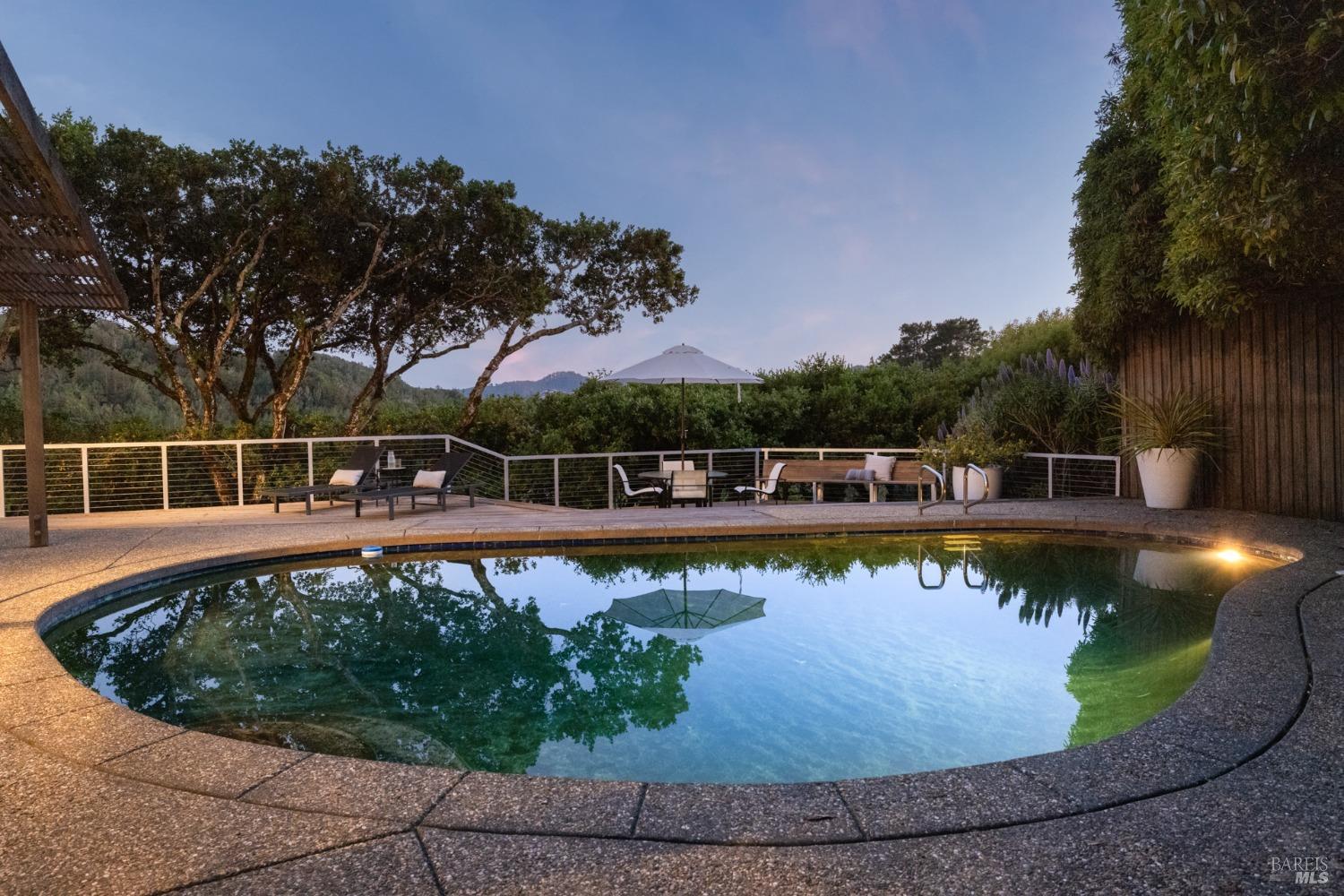 Welcome to 7 Sarah Drive, an architectural gem in Mill Valley's coveted Country Club neighborhood. Designed by acclaimed Edmonds + Lee Architects, this timeless 4-bedroom, 3-bathroom residence blends sophisticated design, natural light, and resort-style living. Perfectly sited to capture sweeping valley views and all-day southern sun, the home features walls of sliding glass that dissolve the boundary between indoors and out. The main level offers a dramatic entry foyer, expansive living room, imported custom kitchen, open dining and family room, two stylish bedrooms, a full bathroom, plus a guest-ready laundry/pool bath. Upstairs, the sun-drenched primary suite is a true retreat with spa-inspired finishes, Carrera marble, and a private oversized deck for lounging or entertaining. An additional bedroom is ideal for a home office or nursery. The resort-like grounds include a wraparound ipe deck, sleek courtyard with custom water feature, sparkling pool, outdoor sauna, and shower. Radiant-heated concrete floors, luxury finishes throughout, ample parking, and a 2-car carport with secure storage complete this special offering. A rare opportunity to live beautifully, luxuriously, and completely connected to nature in one of Mill Valley's most desirable enclaves.