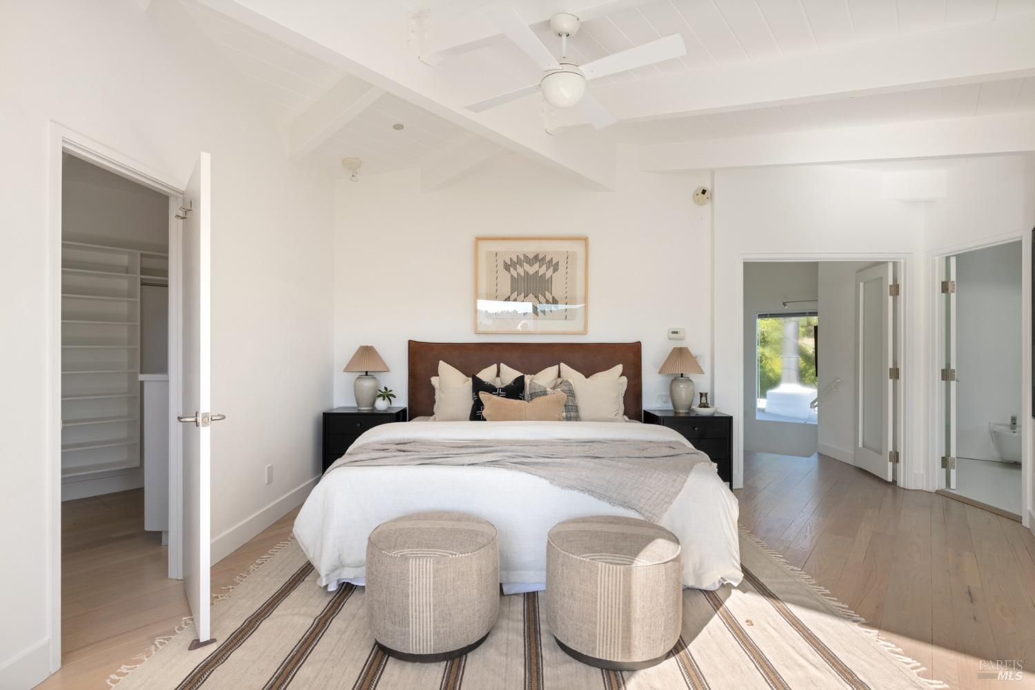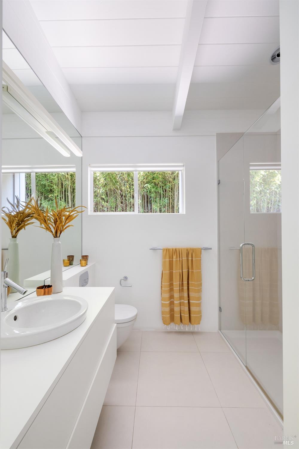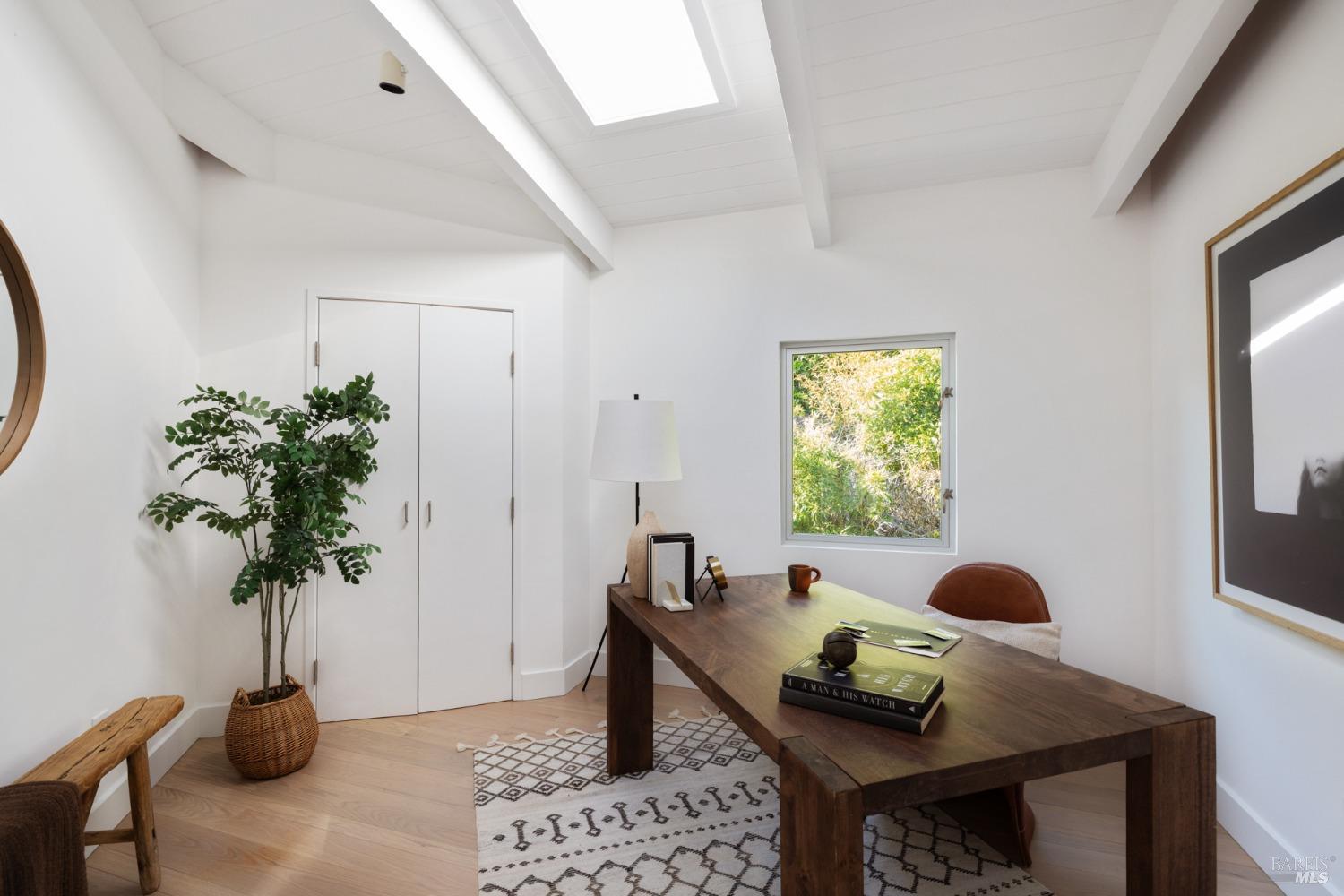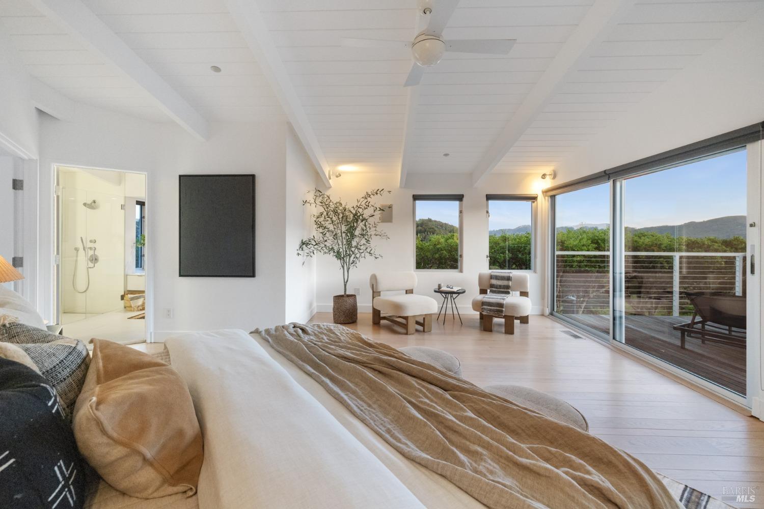 Welcome to 7 Sarah Drive, an architectural gem in Mill Valley's coveted Country Club neighborhood. Designed by acclaimed Edmonds + Lee Architects, this timeless 4-bedroom, 3-bathroom residence blends sophisticated design, natural light, and resort-style living. Perfectly sited to capture sweeping valley views and all-day southern sun, the home features walls of sliding glass that dissolve the boundary between indoors and out. The main level offers a dramatic entry foyer, expansive living room, imported custom kitchen, open dining and family room, two stylish bedrooms, a full bathroom, plus a guest-ready laundry/pool bath. Upstairs, the sun-drenched primary suite is a true retreat with spa-inspired finishes, Carrera marble, and a private oversized deck for lounging or entertaining. An additional bedroom is ideal for a home office or nursery. The resort-like grounds include a wraparound ipe deck, sleek courtyard with custom water feature, sparkling pool, outdoor sauna, and shower. Radiant-heated concrete floors, luxury finishes throughout, ample parking, and a 2-car carport with secure storage complete this special offering. A rare opportunity to live beautifully, luxuriously, and completely connected to nature in one of Mill Valley's most desirable enclaves.
